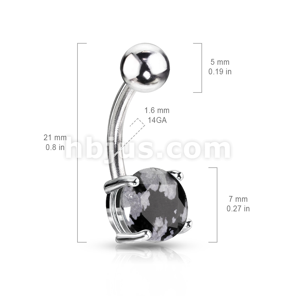 Snow Obsidian Semi Precious Stone Navel 316L Surgical Steel Prong Set