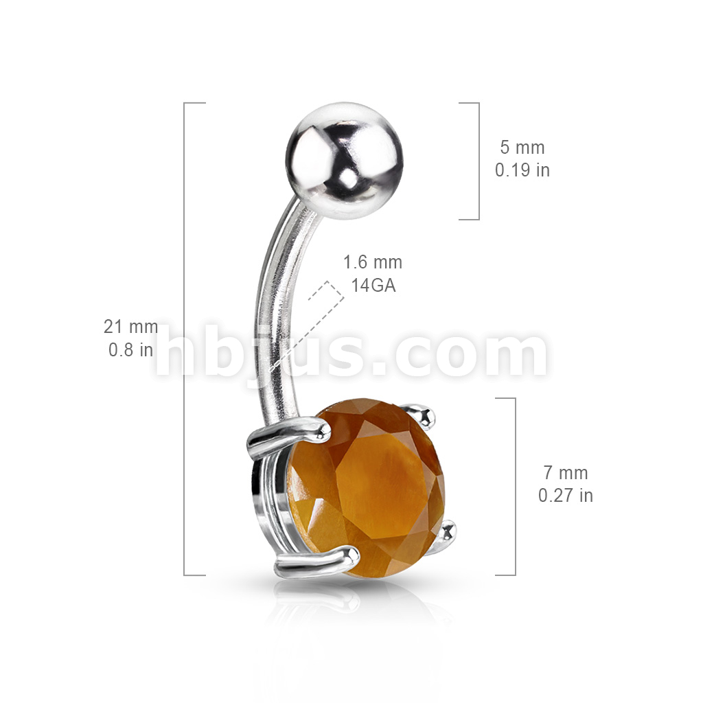 316L Surgical Steel Tiger Eye Semi Precious Stone Prong Set Belly Button Ring