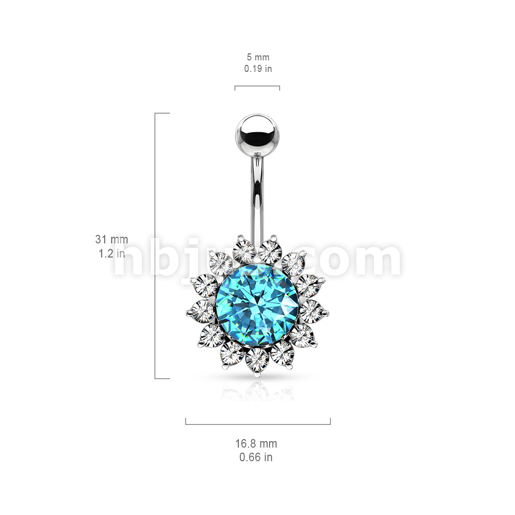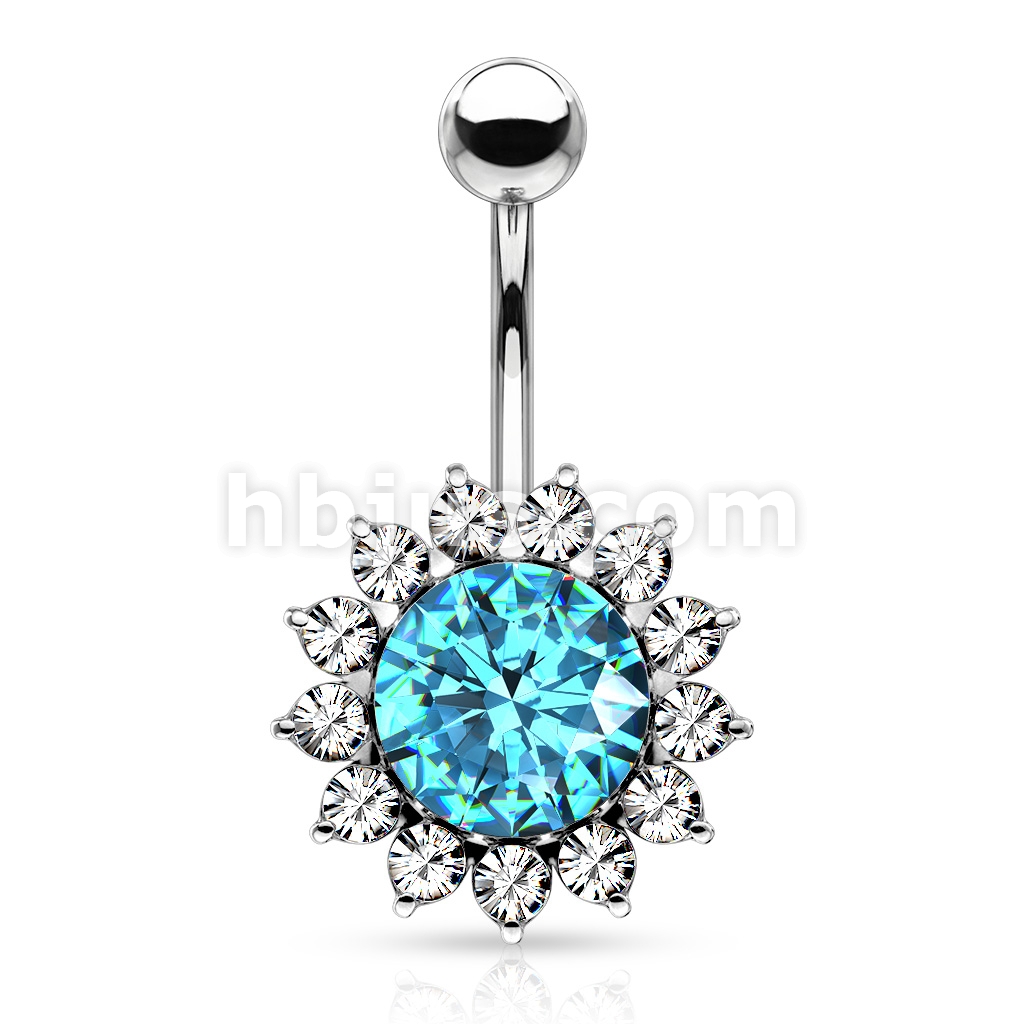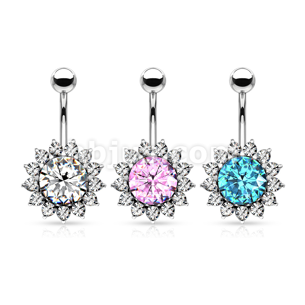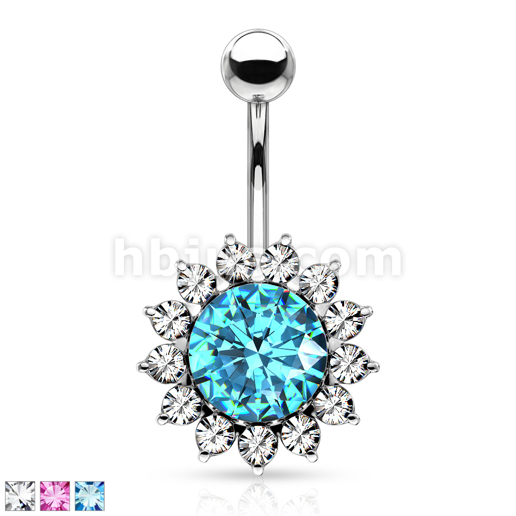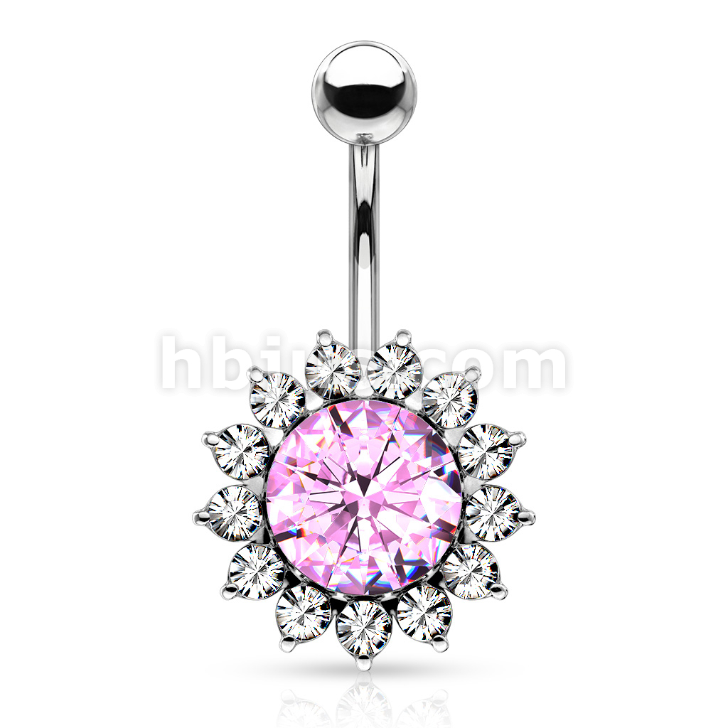 316L Surgical Steel Large CZ Flower Belly Button Ring