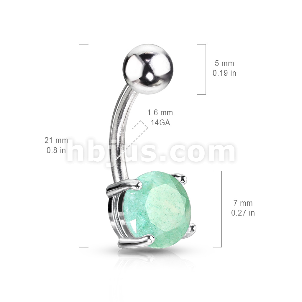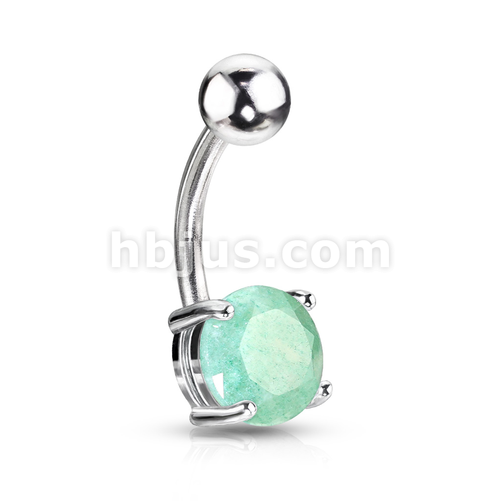 316L Surgical Steel Jade Semi Precious Stone Prong Set Belly Button Ring