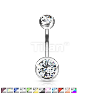 Implant Grade Titanium Externally Threaded Double CZ Bezel Set Belly Button Ring
