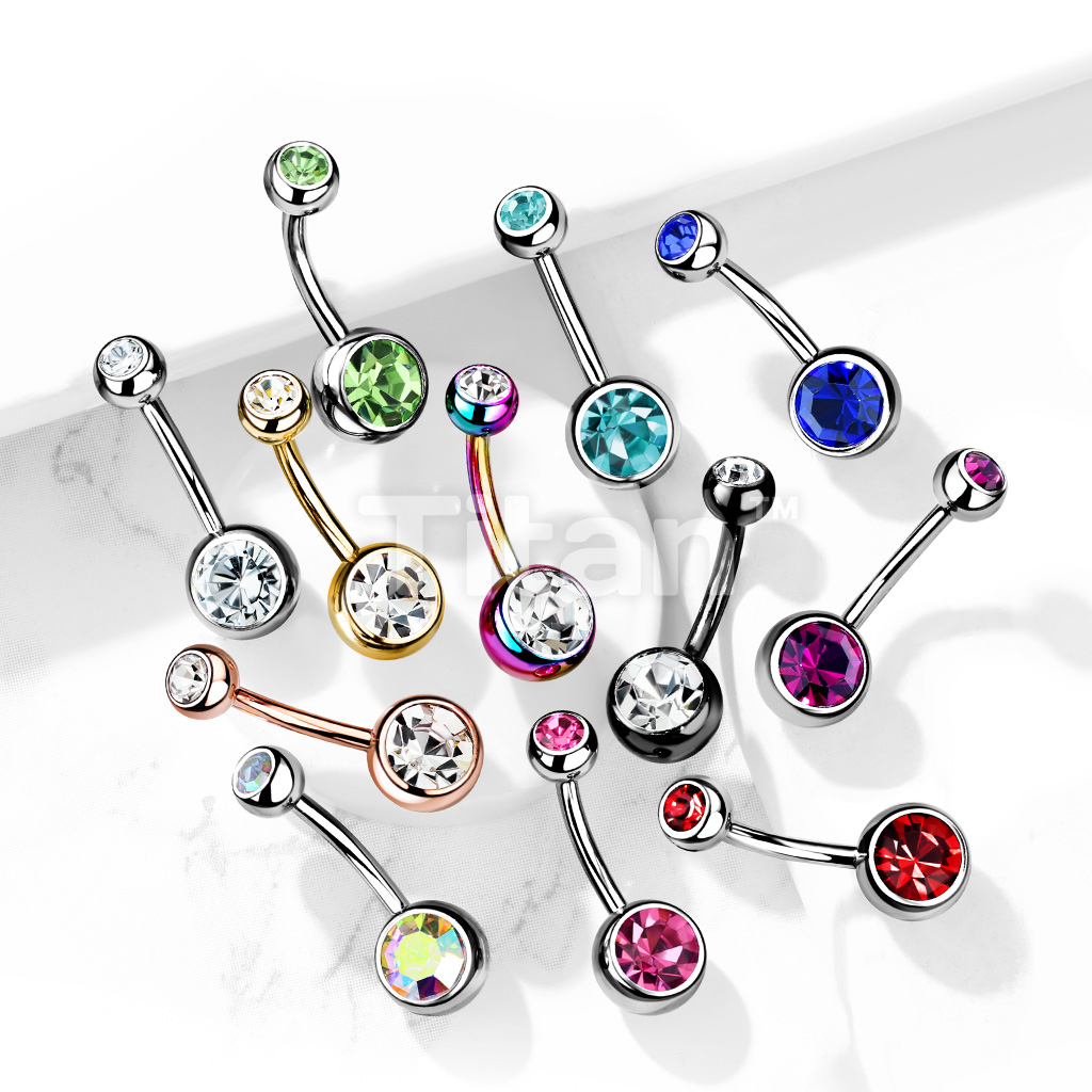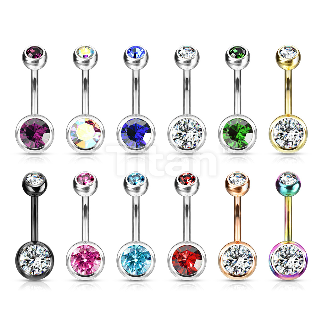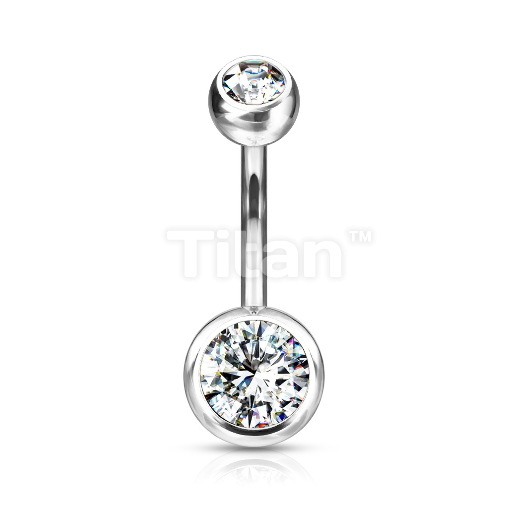 Implant Grade Titanium Externally Threaded Double CZ  Bezel Set Belly Button Ring