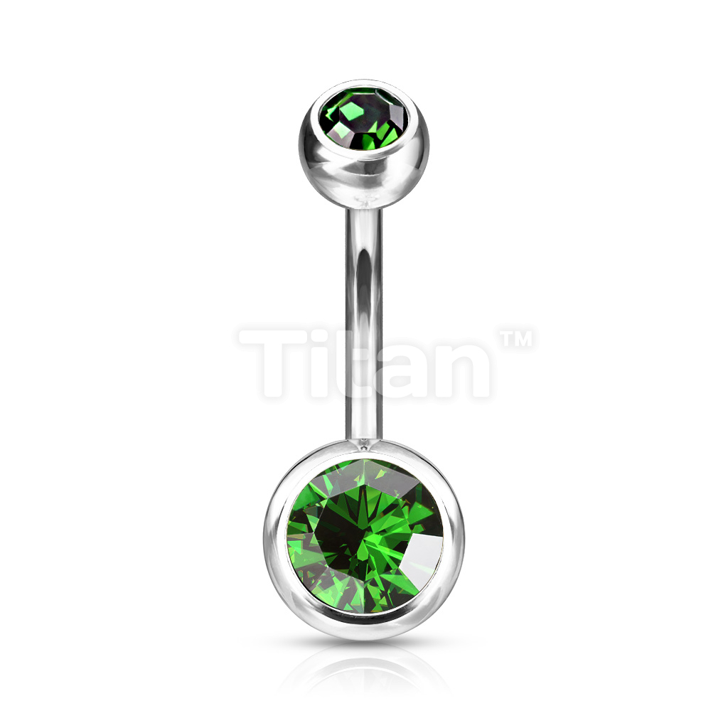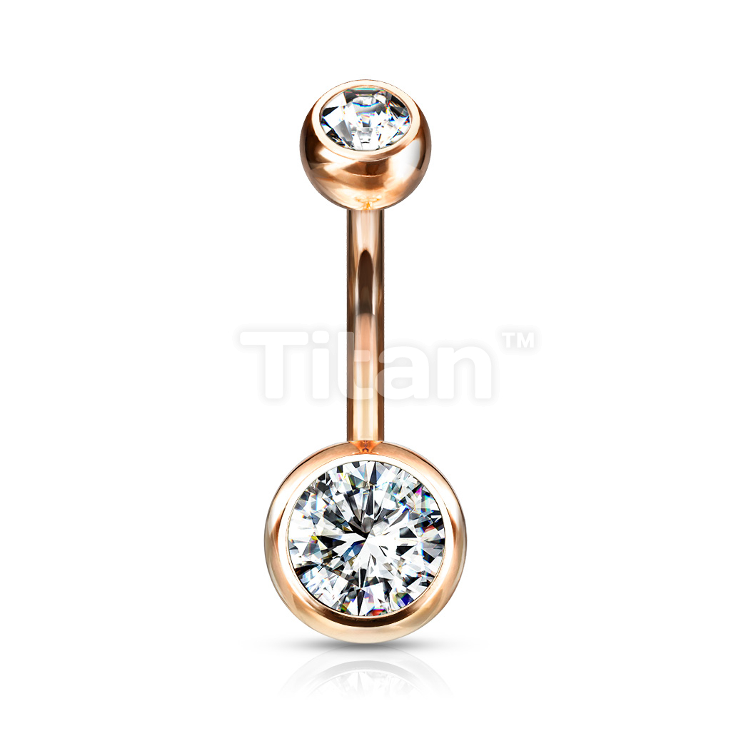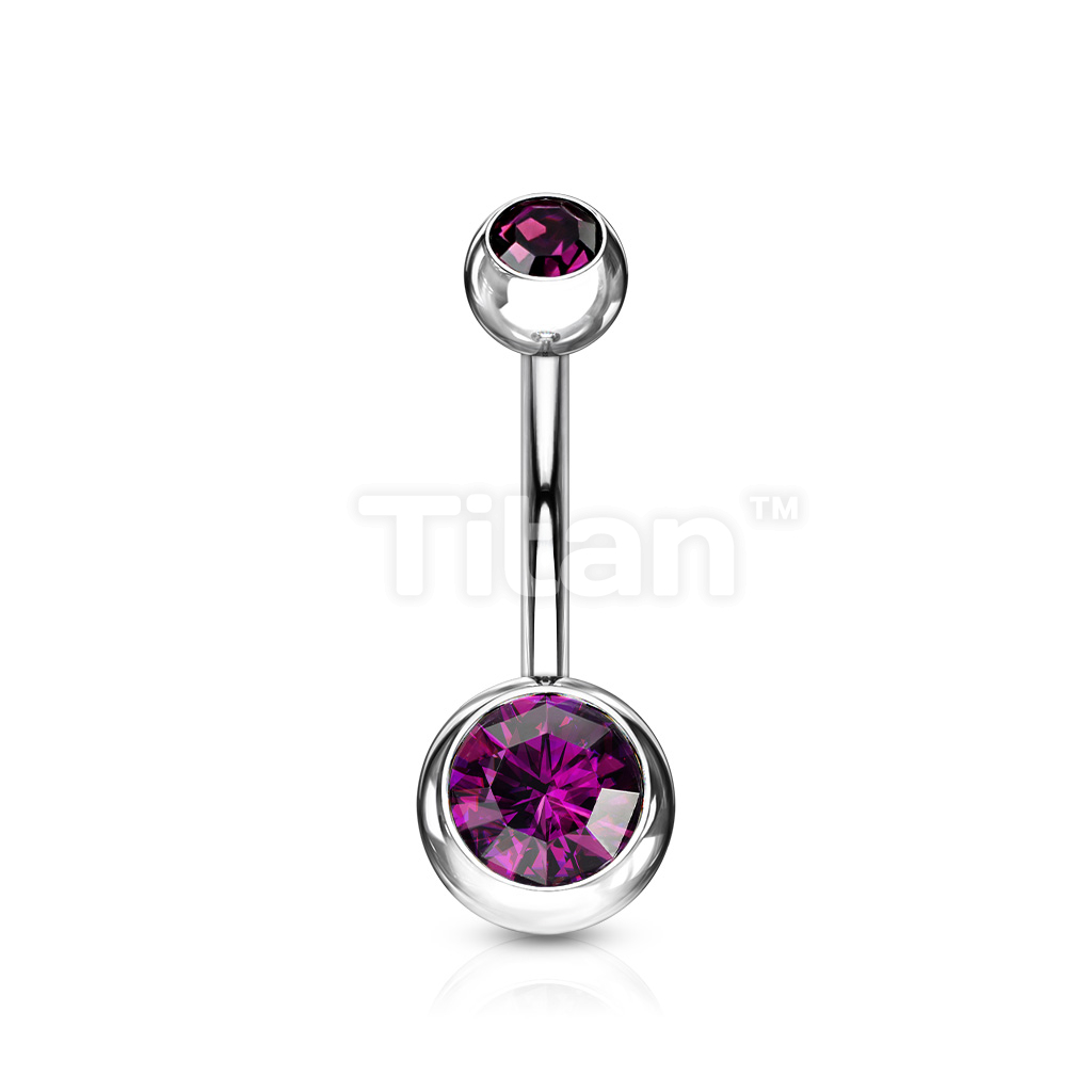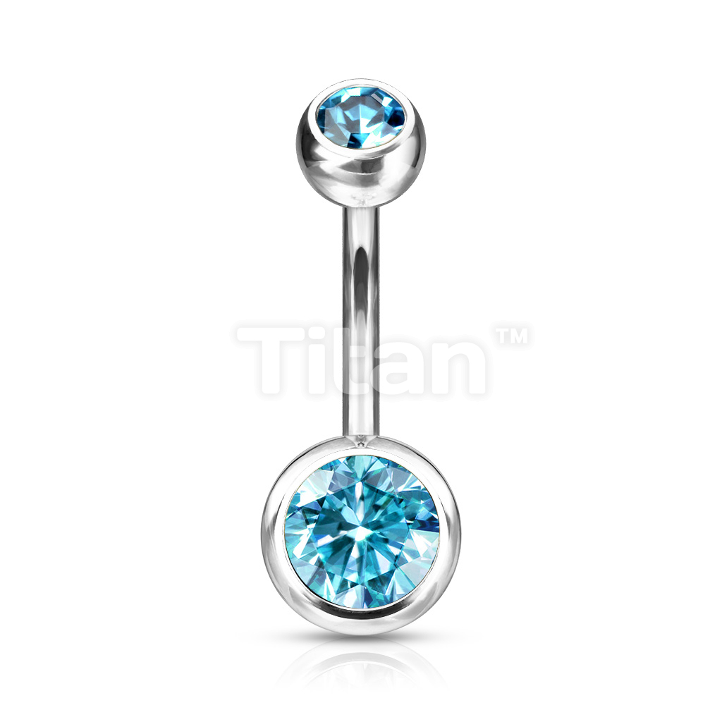 Implant Grade Titanium Externally Threaded Double CZ  Bezel Set Belly Button Ring