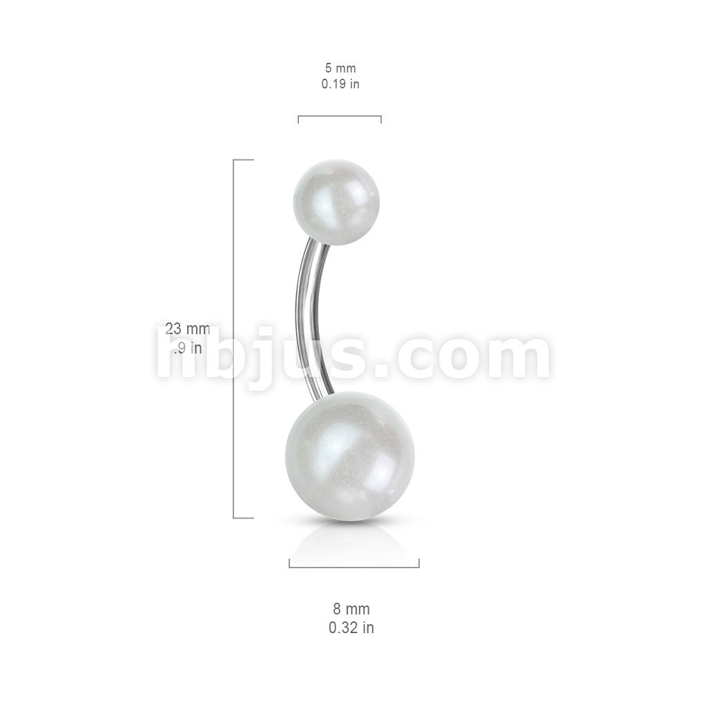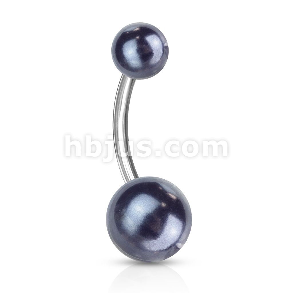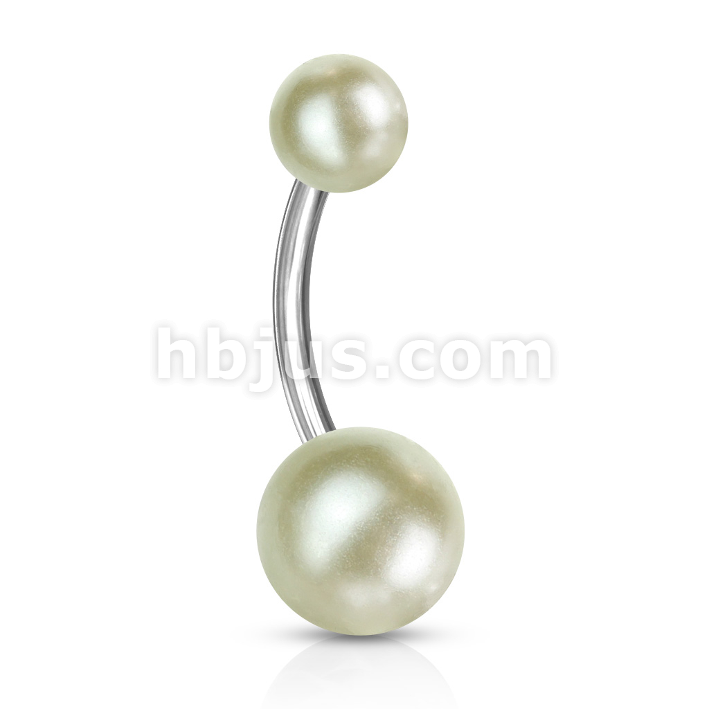 Pearlish Coat Acrylic Balls 316L Surgical Steel Navel Ring