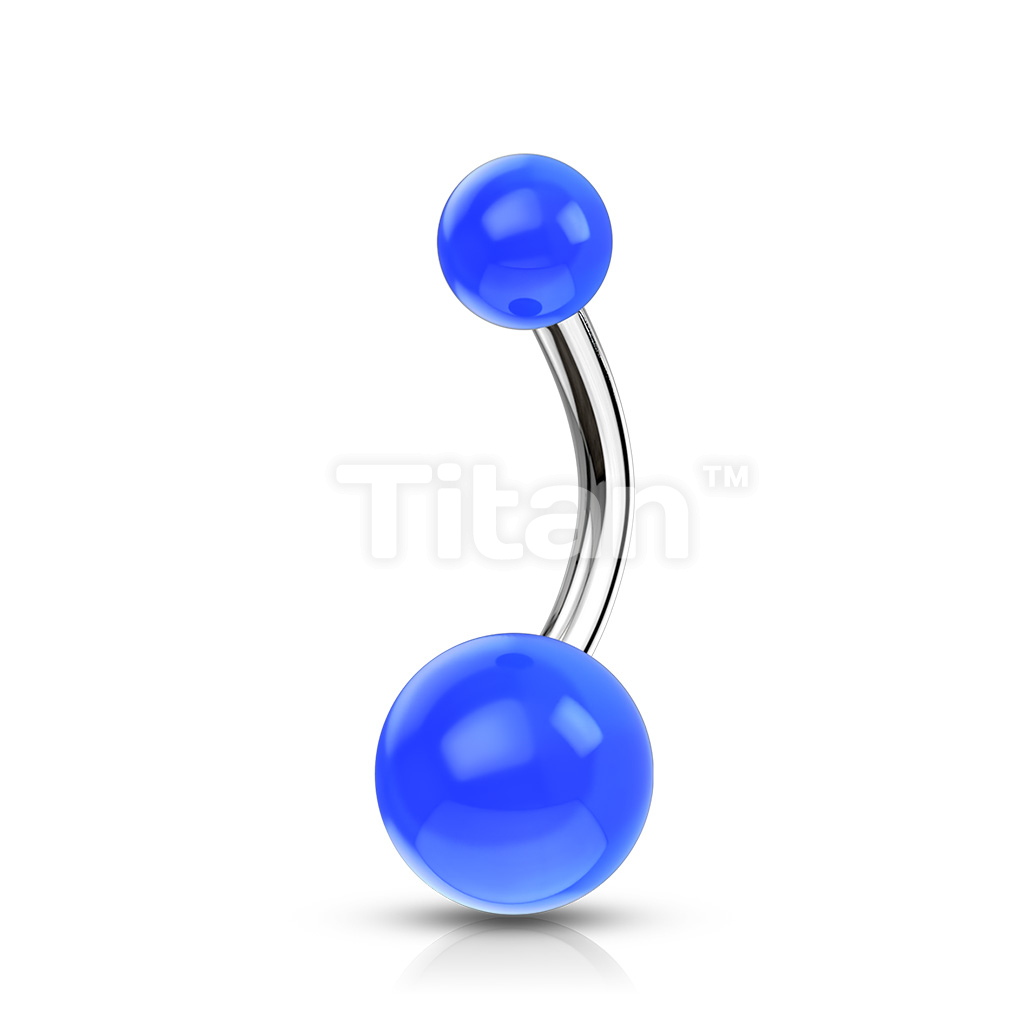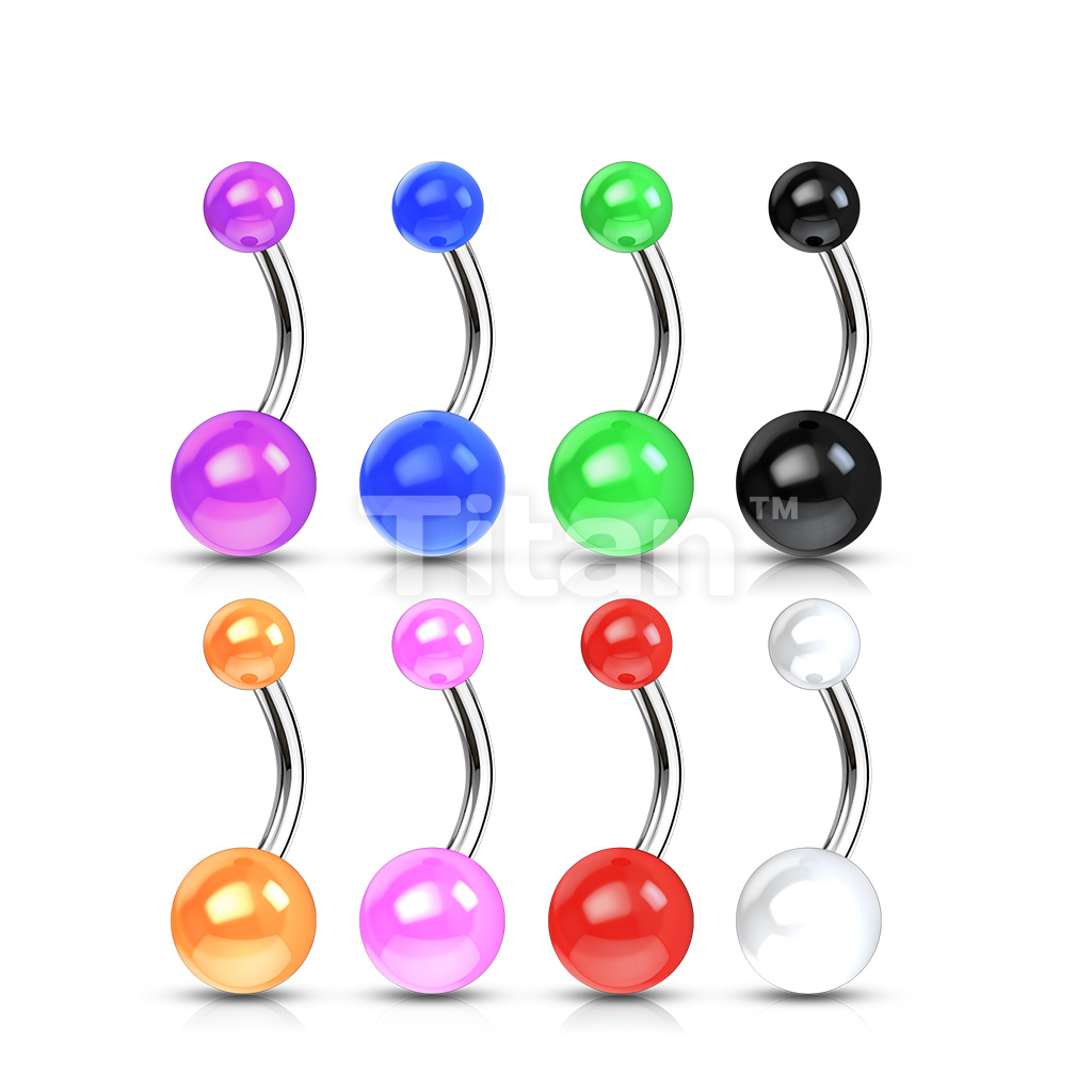 Implant Grade Titanium Externally Threaded Belly Button Ring With Solid Color Acrylic Balls