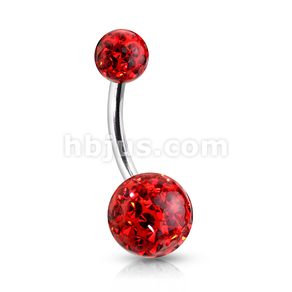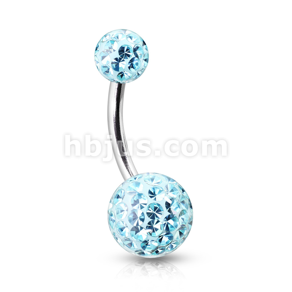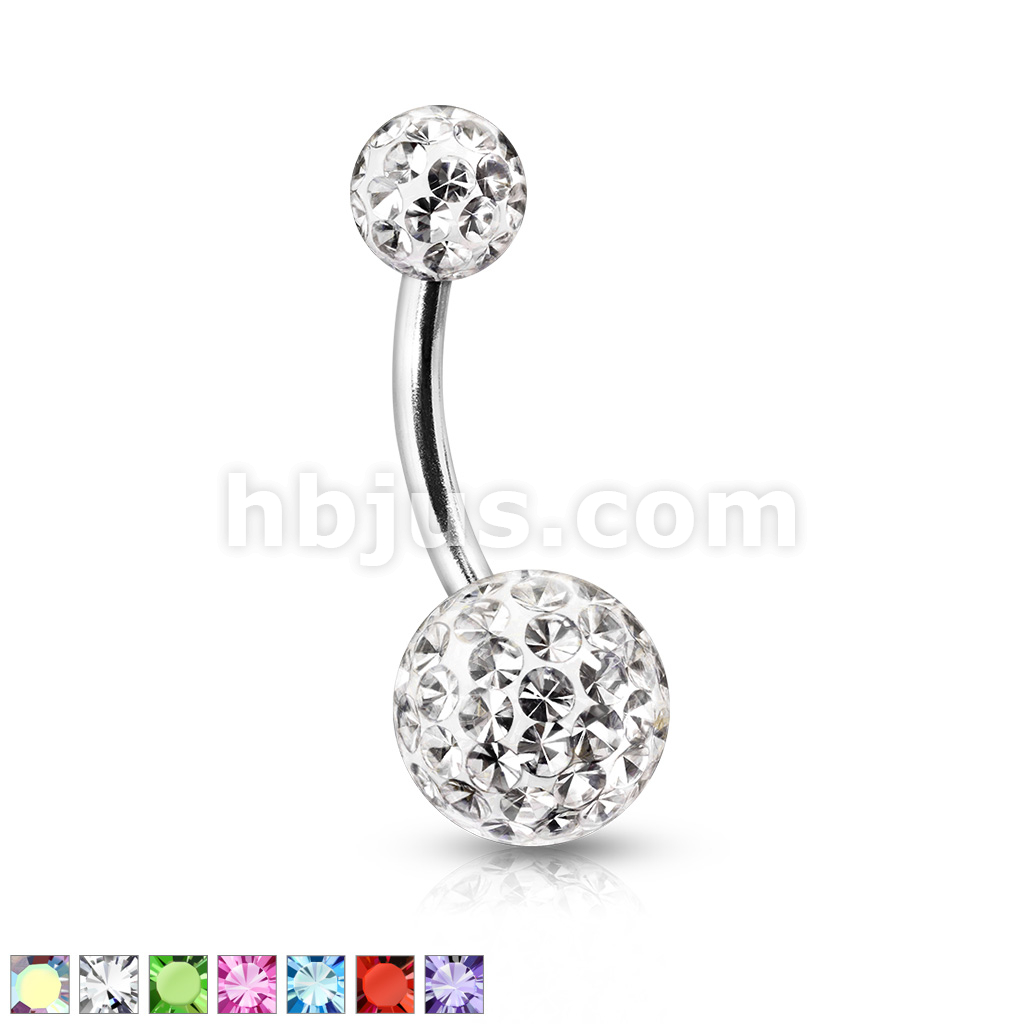 Clear Epoxy Over Crystal Paved Ferido Ball 316L Surgical Steel Navel Ring