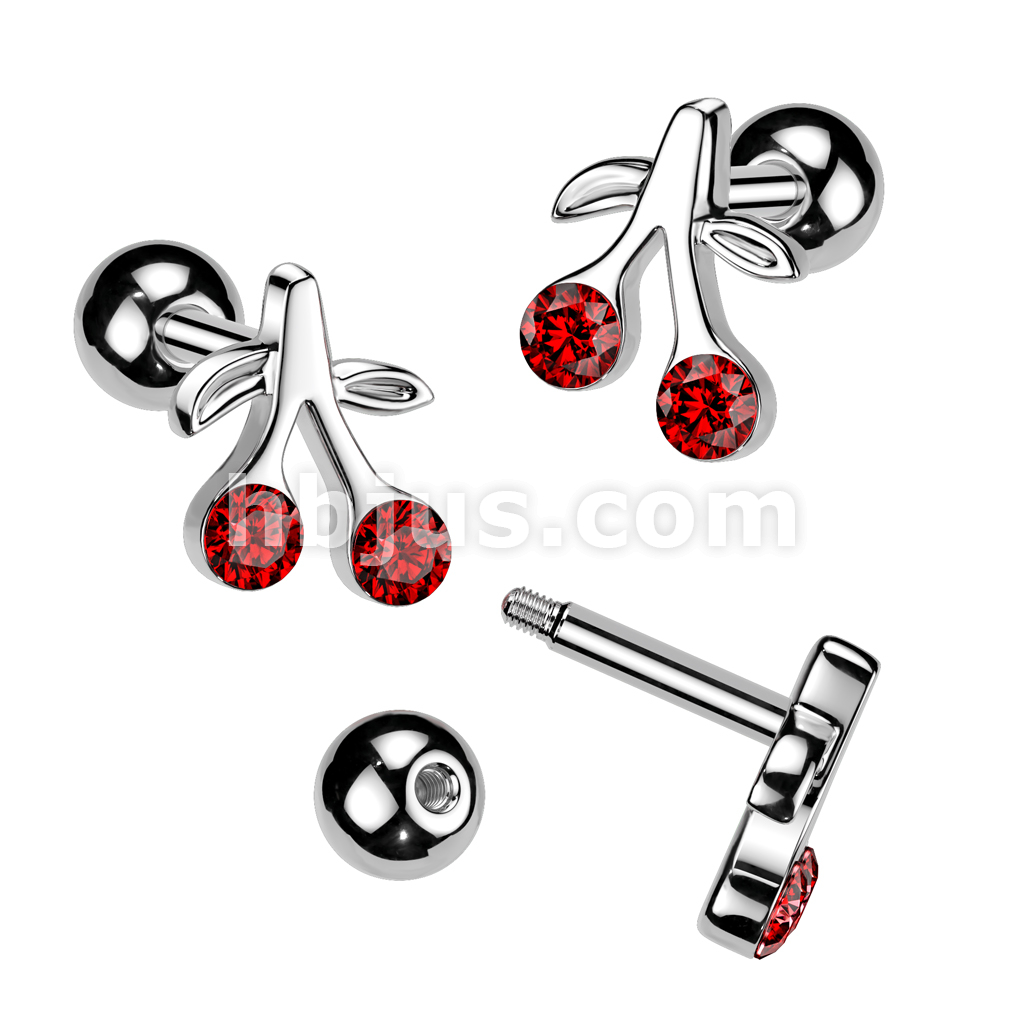 Cherry with Red CZ Tragus/Cartilage Piercing Stud 316L Surgical Steel