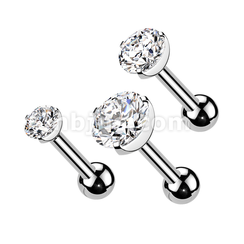3 Pcs Value Pack of Assorted 316L Tragus Bar with Clear Round Gem Top