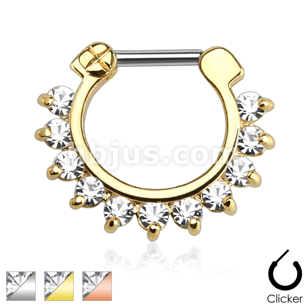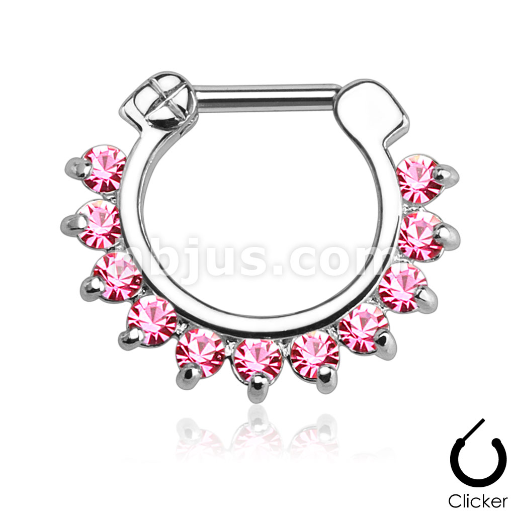Single Line Pronged Gems 316L Surgical Steel Septum Clicker