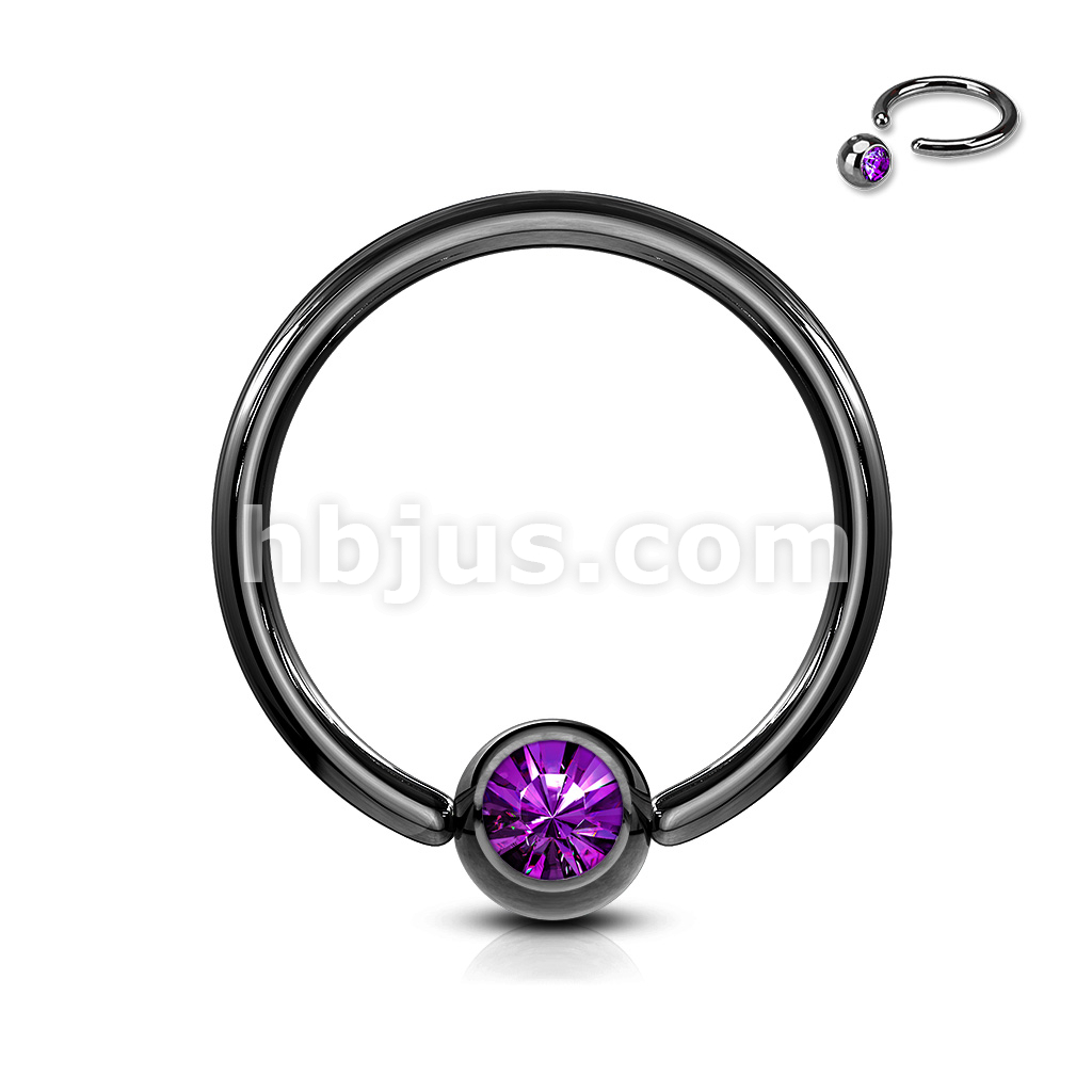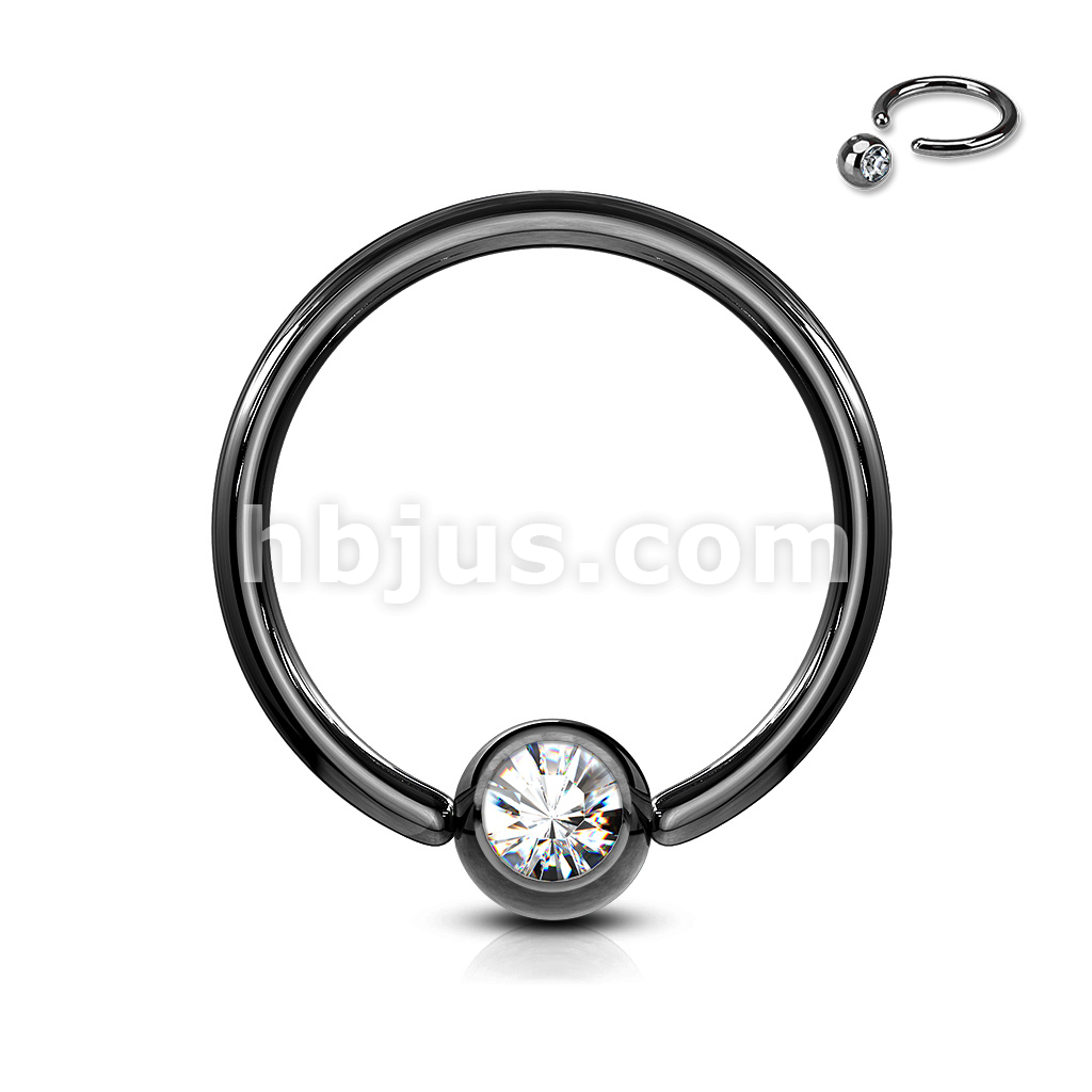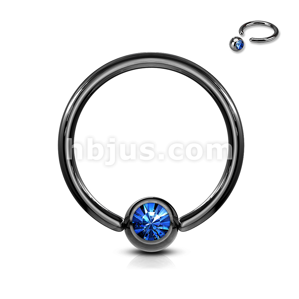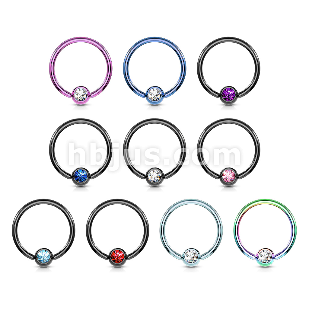 Titanium IP Over 316L Surgical Stainless Steel Captive Bead Ring with gem