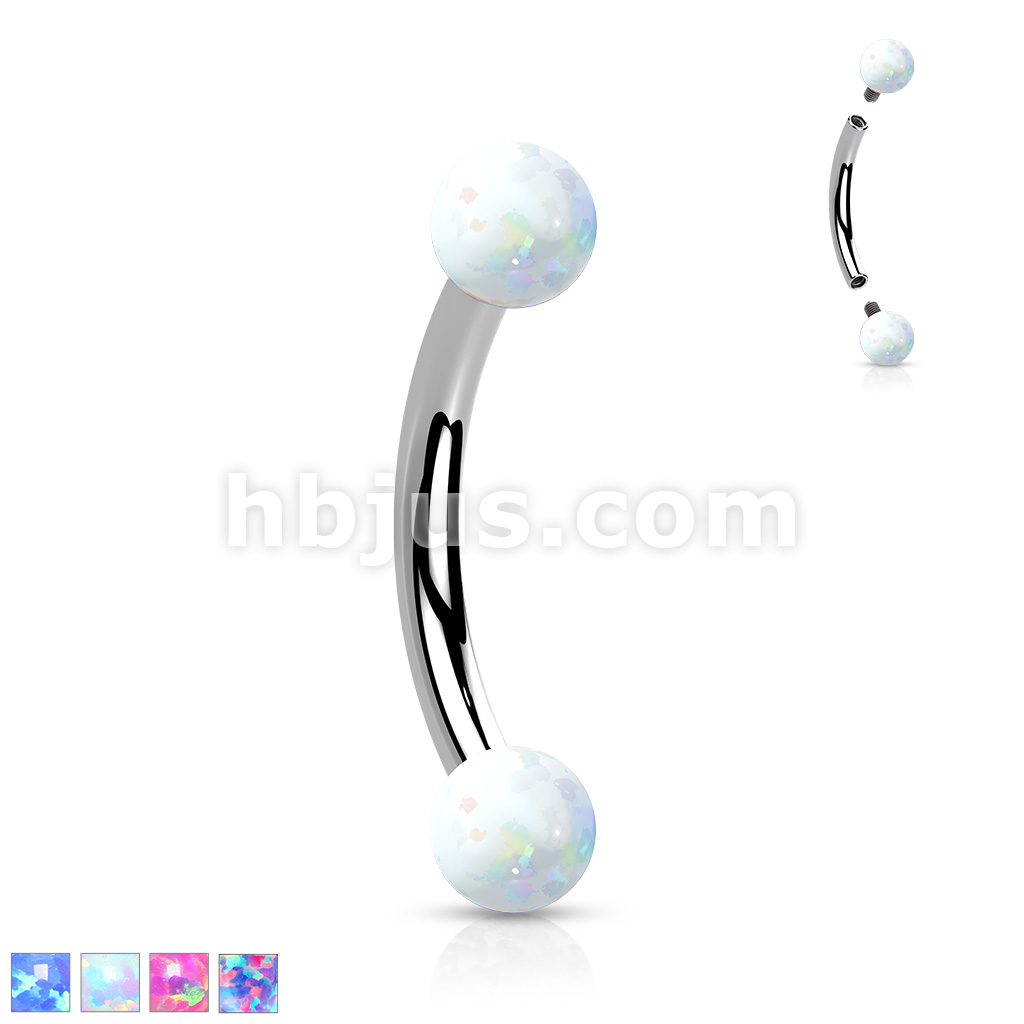 Synthetic Opal 316L Surgical Steel Internally Threaded Curved Eyebrow Barbell