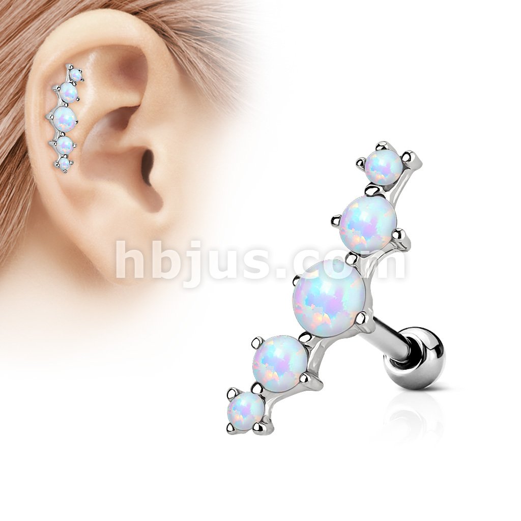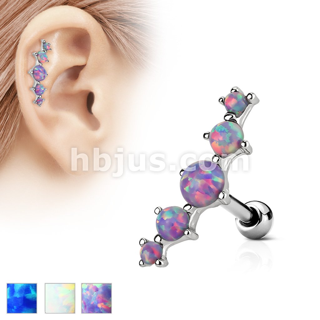 Five Opal Set 316L Surgical Steel Tragus/Cartilage Barbell