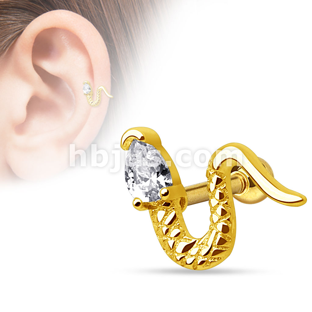 Snake with Triangle CZ Head 316L Surgical Steel Cartilage/Tragus Barbell