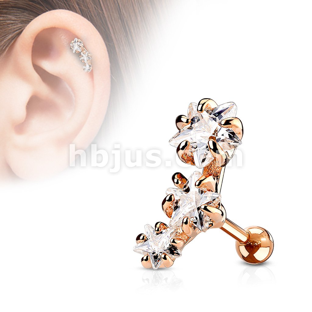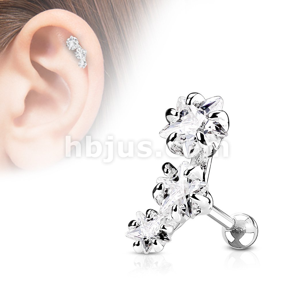Triple Star CZ Set 316L Surgical Steel Cartilage/Tragus Bar