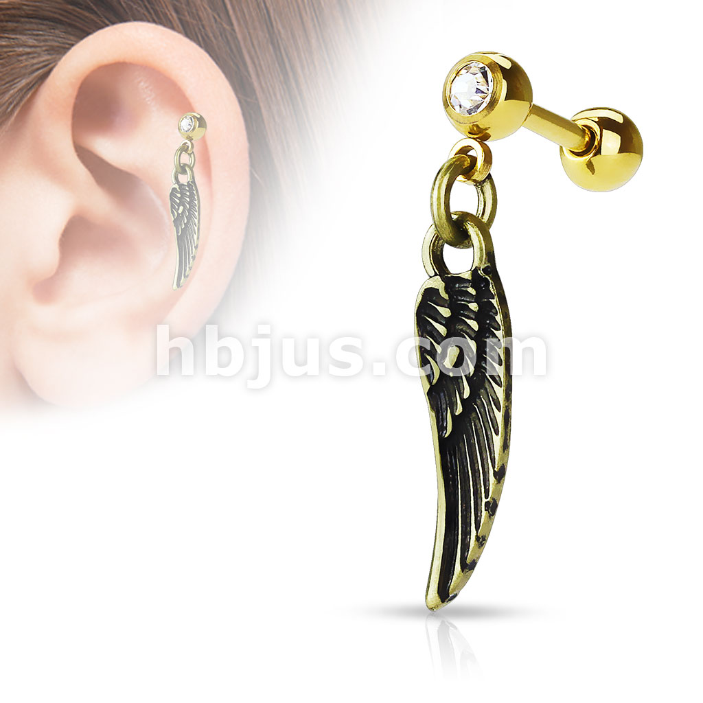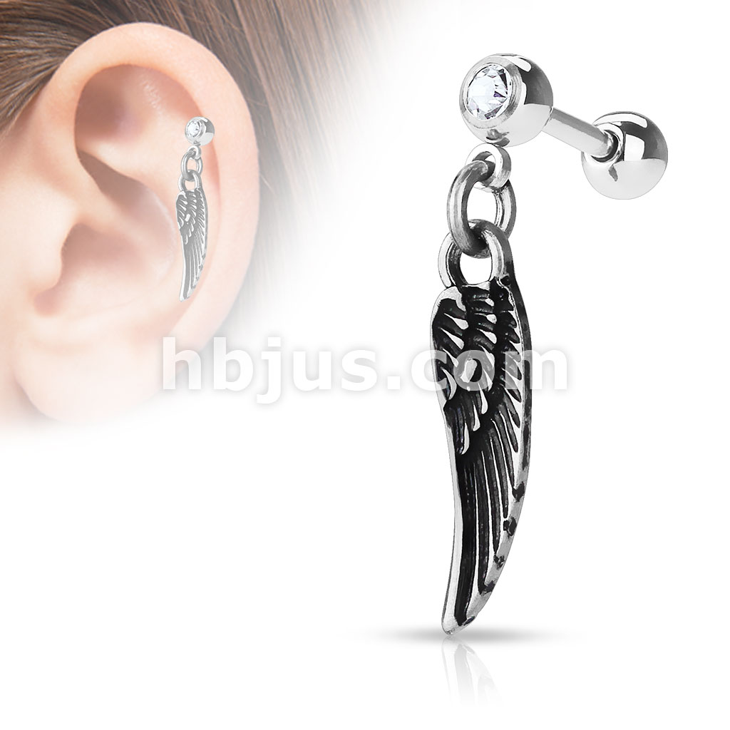 Angel Wing Dangle 316L Surgical Steel Jewel set Cartilage/Tragus Barbells