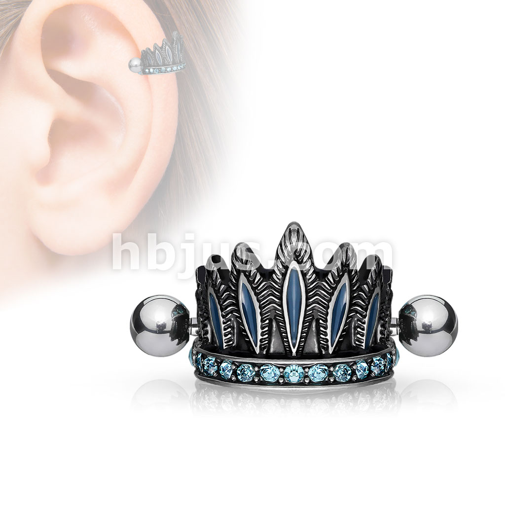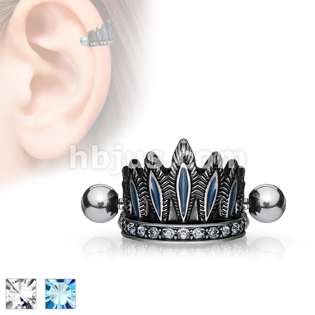 Tribal Chief's Headdress Helix Cuff Antique Silver Plated 316L Surgical Steel Cartilage Barbell