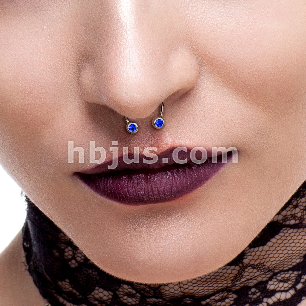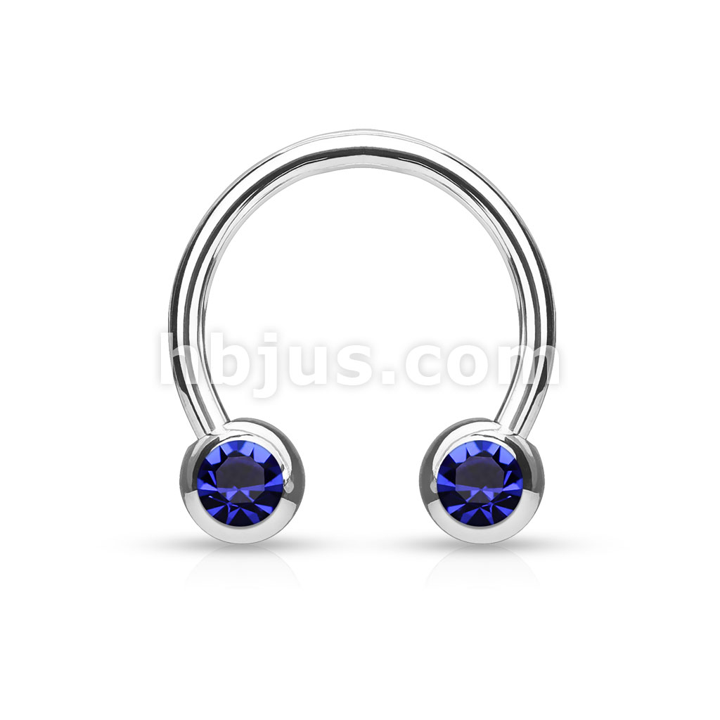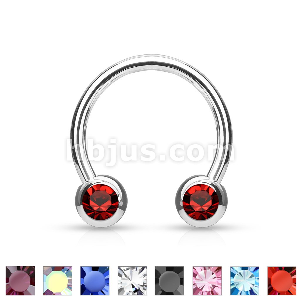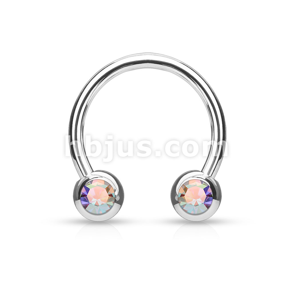 Front Facing Jewel Set Balls IP Over 316L Surgical Steel Circular/Horseshoes For Nipple, Septum and Ear Cartilage Piercings