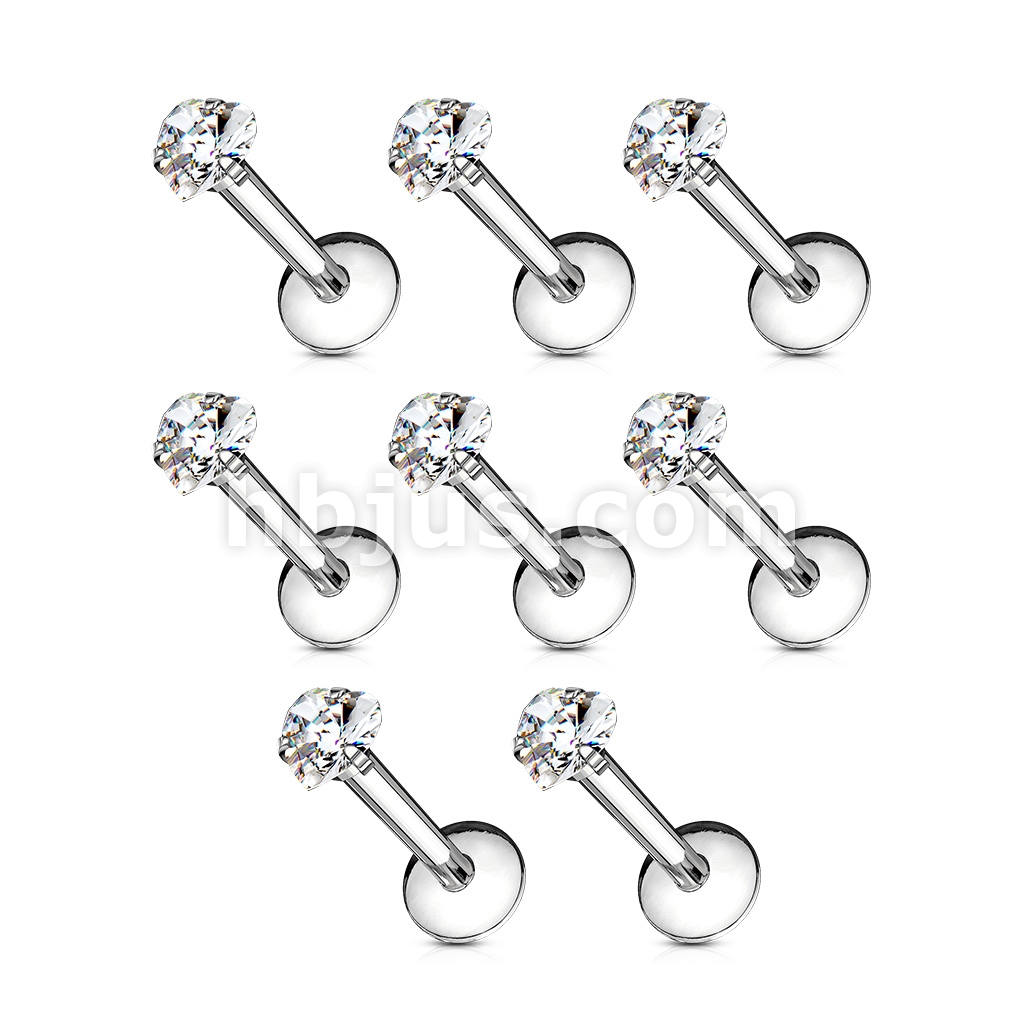 100 Pcs Internally Threaded Labret/Monroe With Clear Heart CZ Prong Set Top Bulk Pack