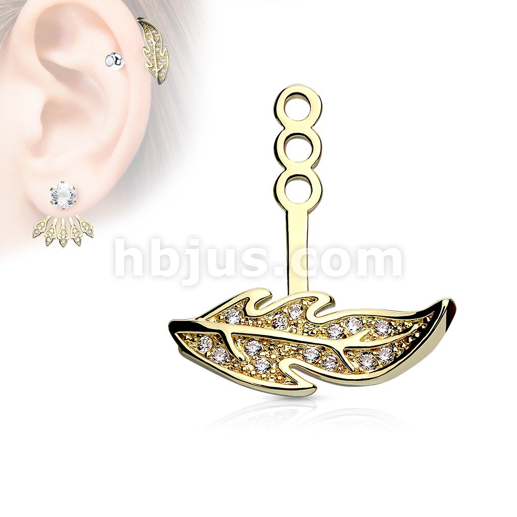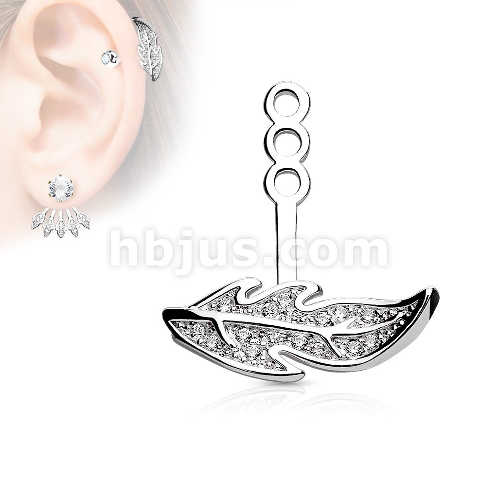 Micro Pave CZ Leaf Earring Jacket / Cartilage Stud Add on Dangle