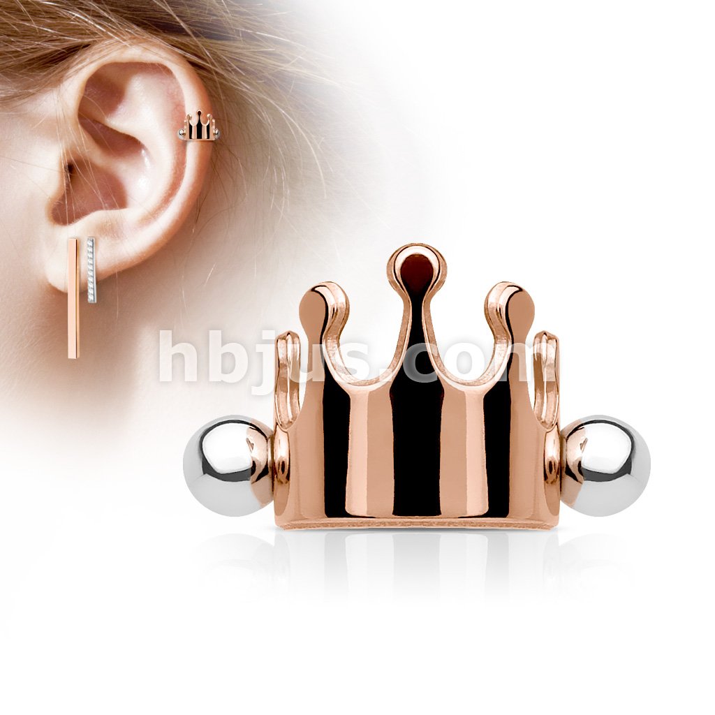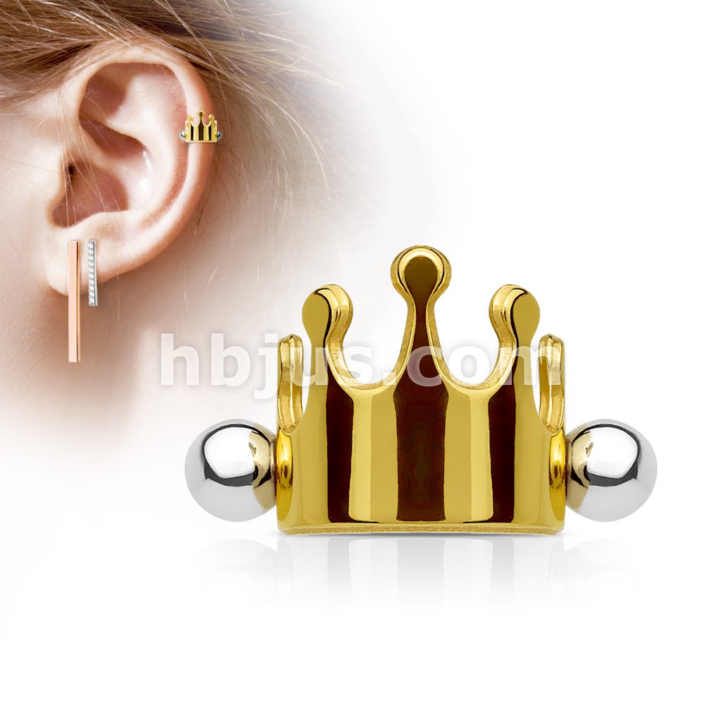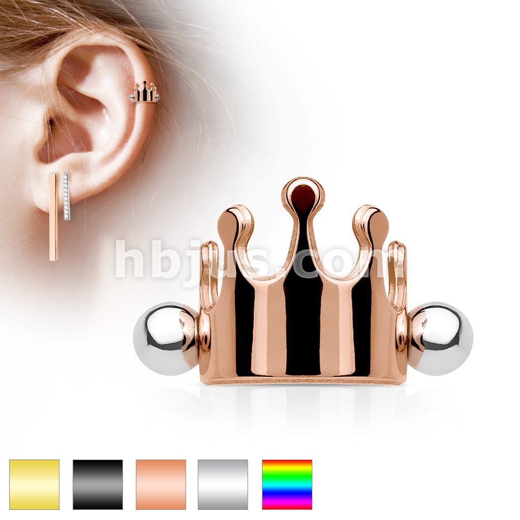 Crown 316L Surgical Steel Ear Cartilage/Helix Cuff Barbell