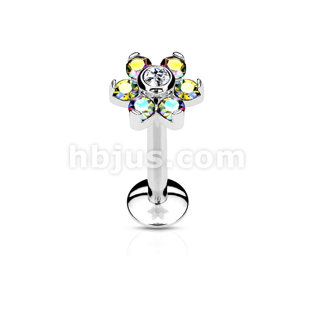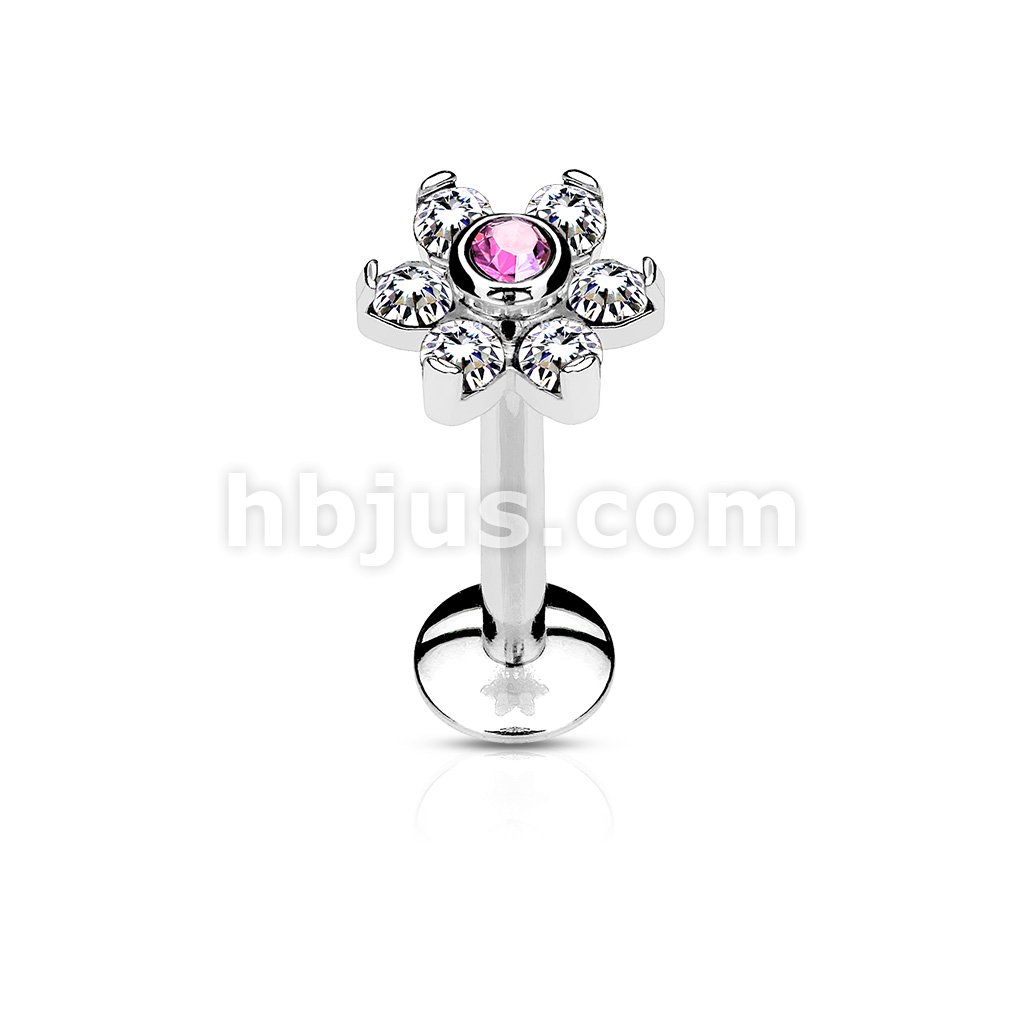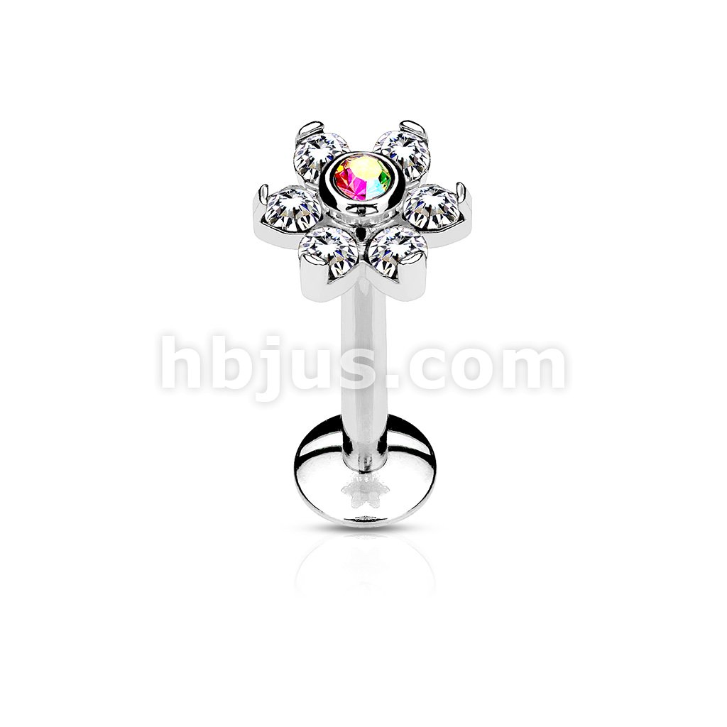 All 316L Surgical Steel Internally Threaded 6-Gem Flower Top Labret/Monroe/Cartilage Stud