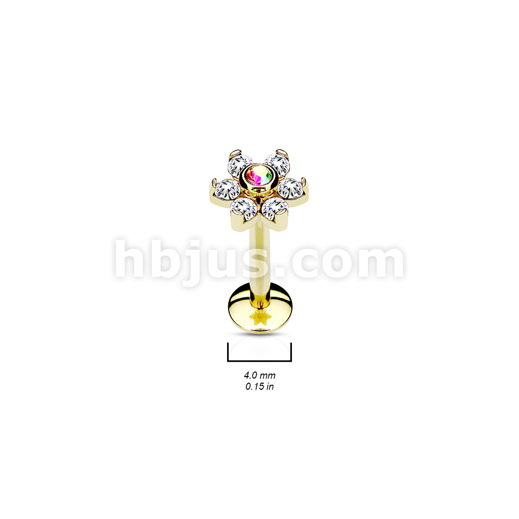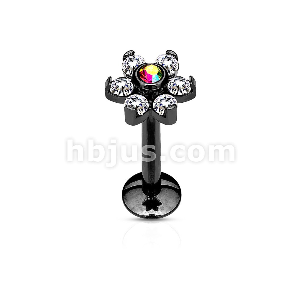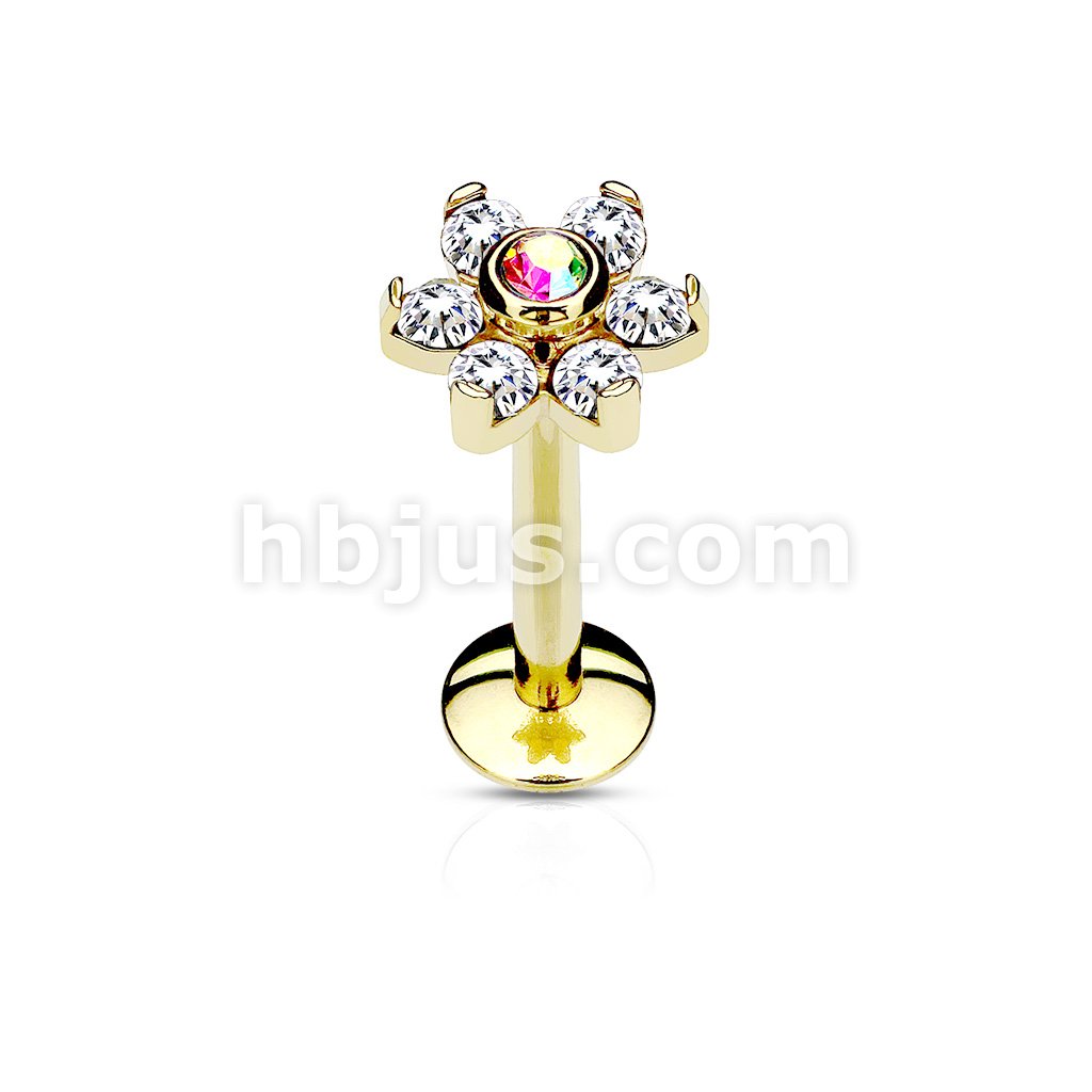 IP Over All 316L Surgical Steel Internally Threaded 6-Gem Flower Top Labret/Monroe/Cartilage Stud