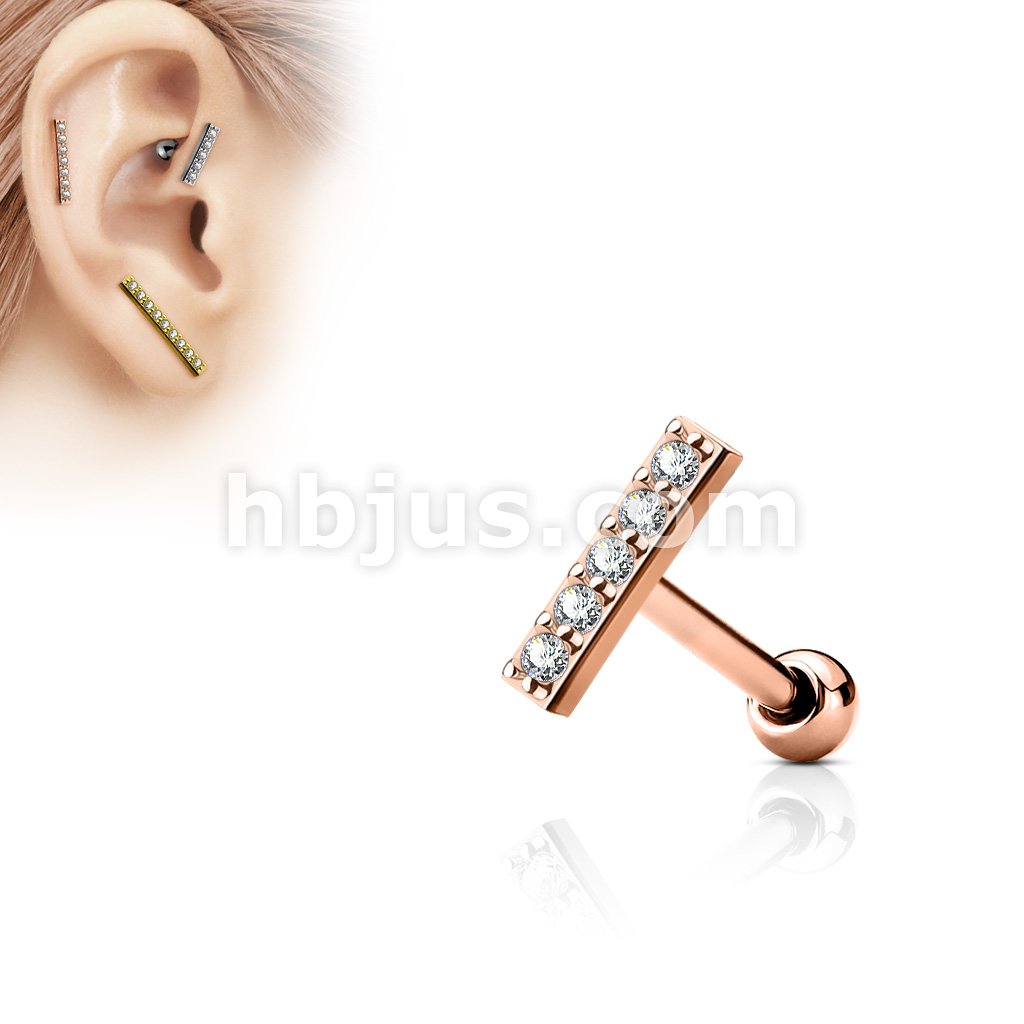 CZ Lined Set 9mm Long Bar Top 316L Surgical Steel Cartilage, Tragus Barbell Studs