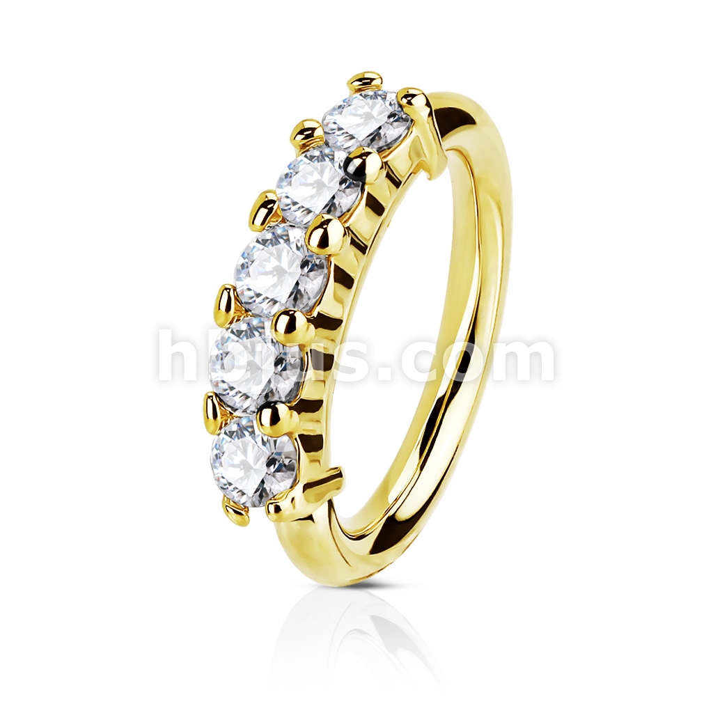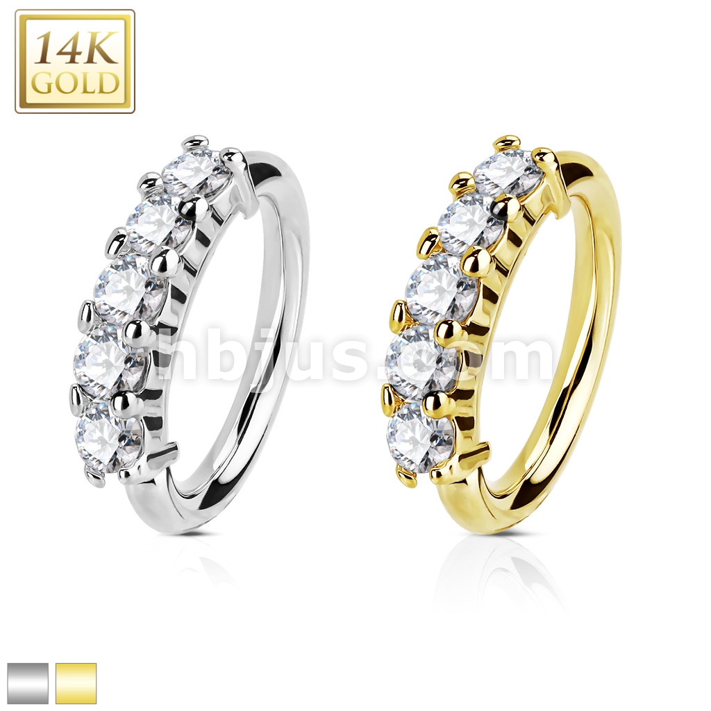 14Kt. Gold Five CZ Set Open Hoop Rings for Nose, Ear Cartilage and Lip Piercings