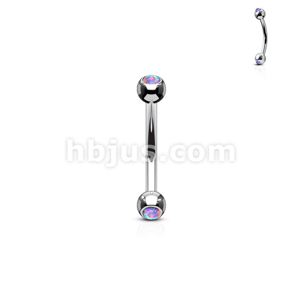 Opal Set Balls On Both Sides 316L Surgical Steel Curved Barbells