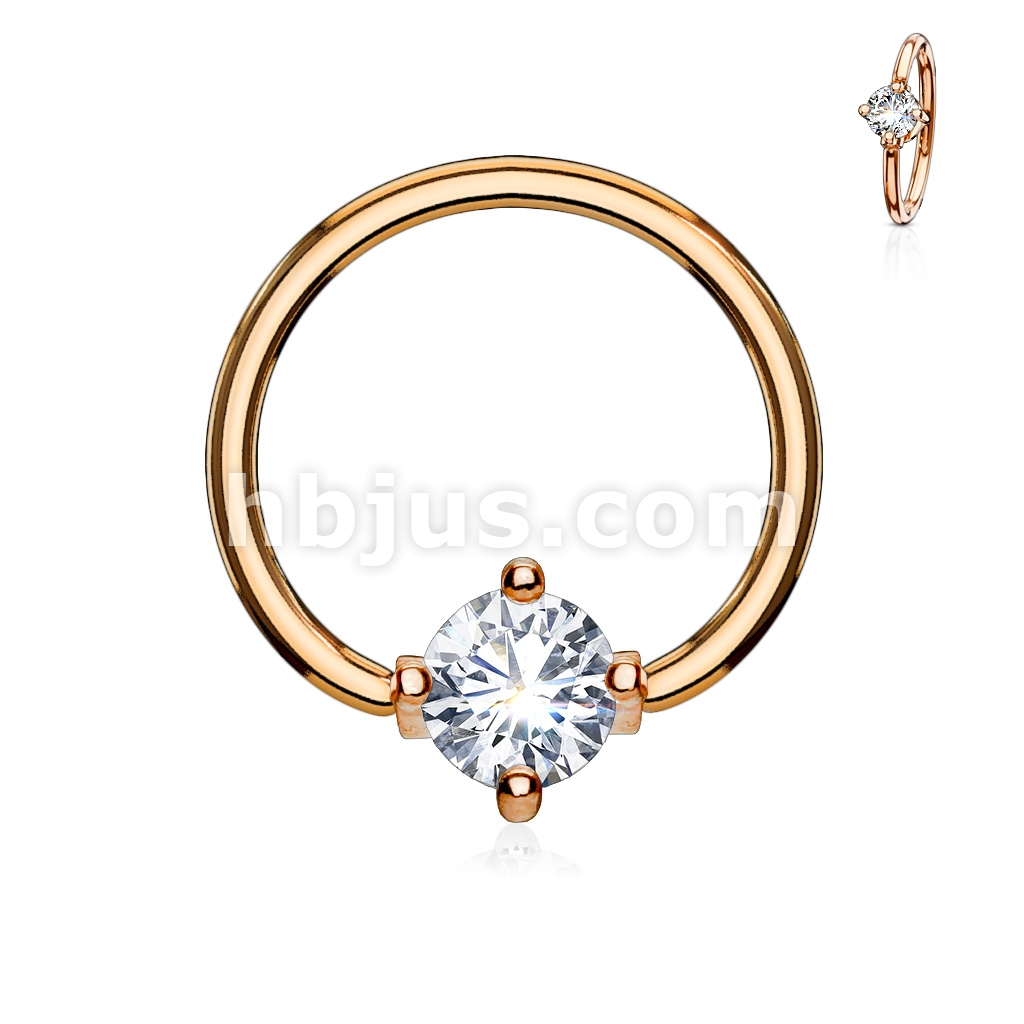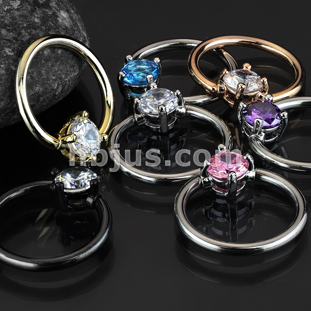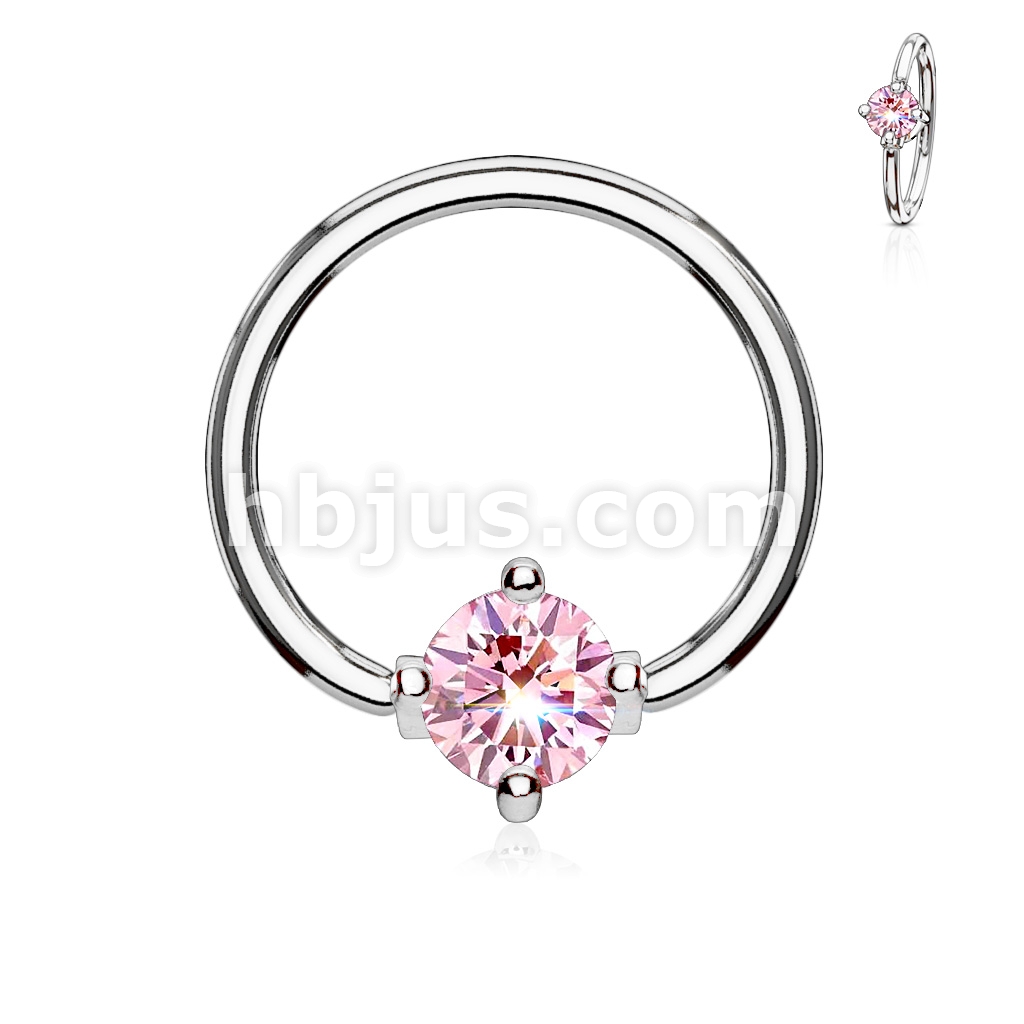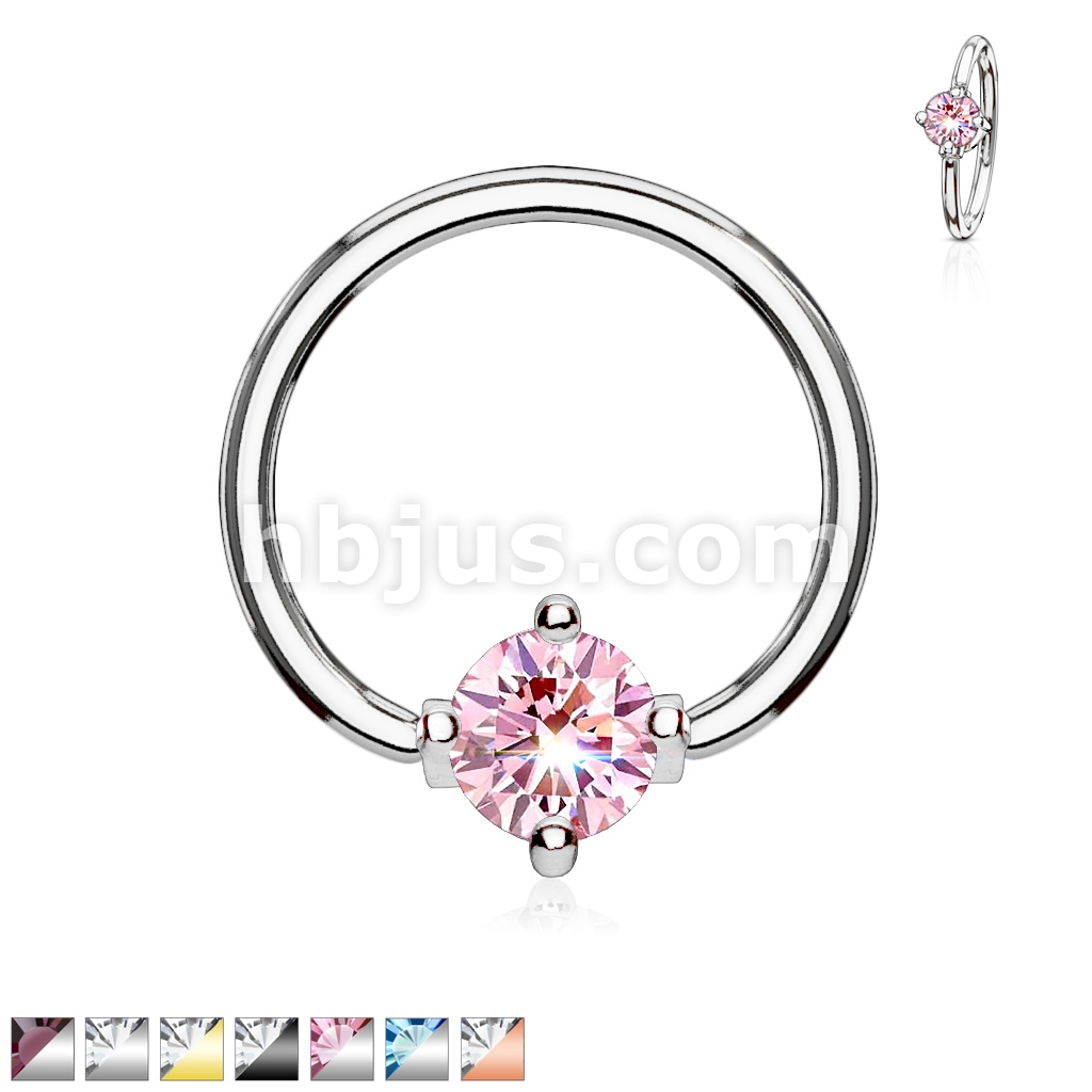Prong Set Round CZ Captive Rings 316L Surgical Steel