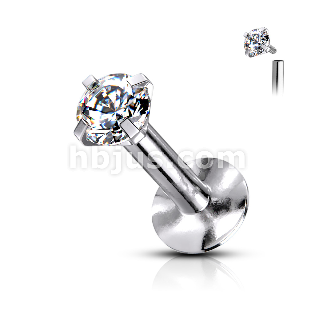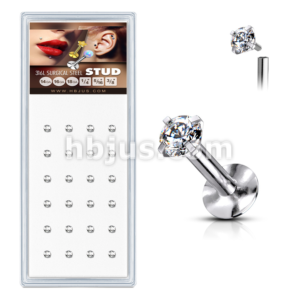 24 Pcs Pre Loaded Internally Threaded Prong Set CZ Top 316L Stud Pack for Labret, Lip, Monroe and Ear Cartilage