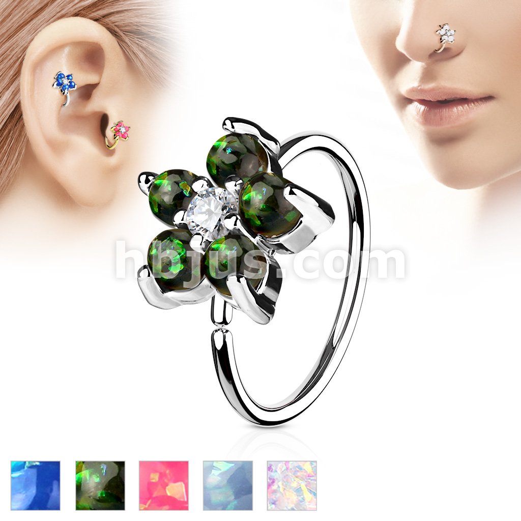 Opal Glitter Set Flower Petals CZ Center 316L Surgical Steel Hoop Ring for Nose & Ear Cartilage