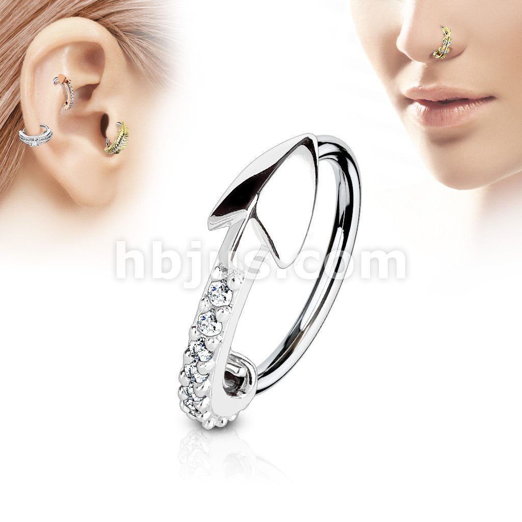 CZ Paved Arrow 316L Surgical Steel Nose, Cartilage Hoop Rings