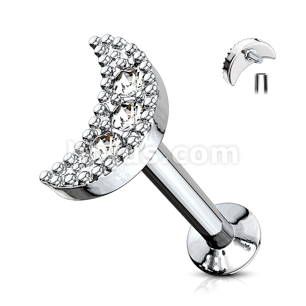 CZ Paved Crescent Top 316L Surgical Steel Internally Threaded Labret,Monroe, Cartilage Studs