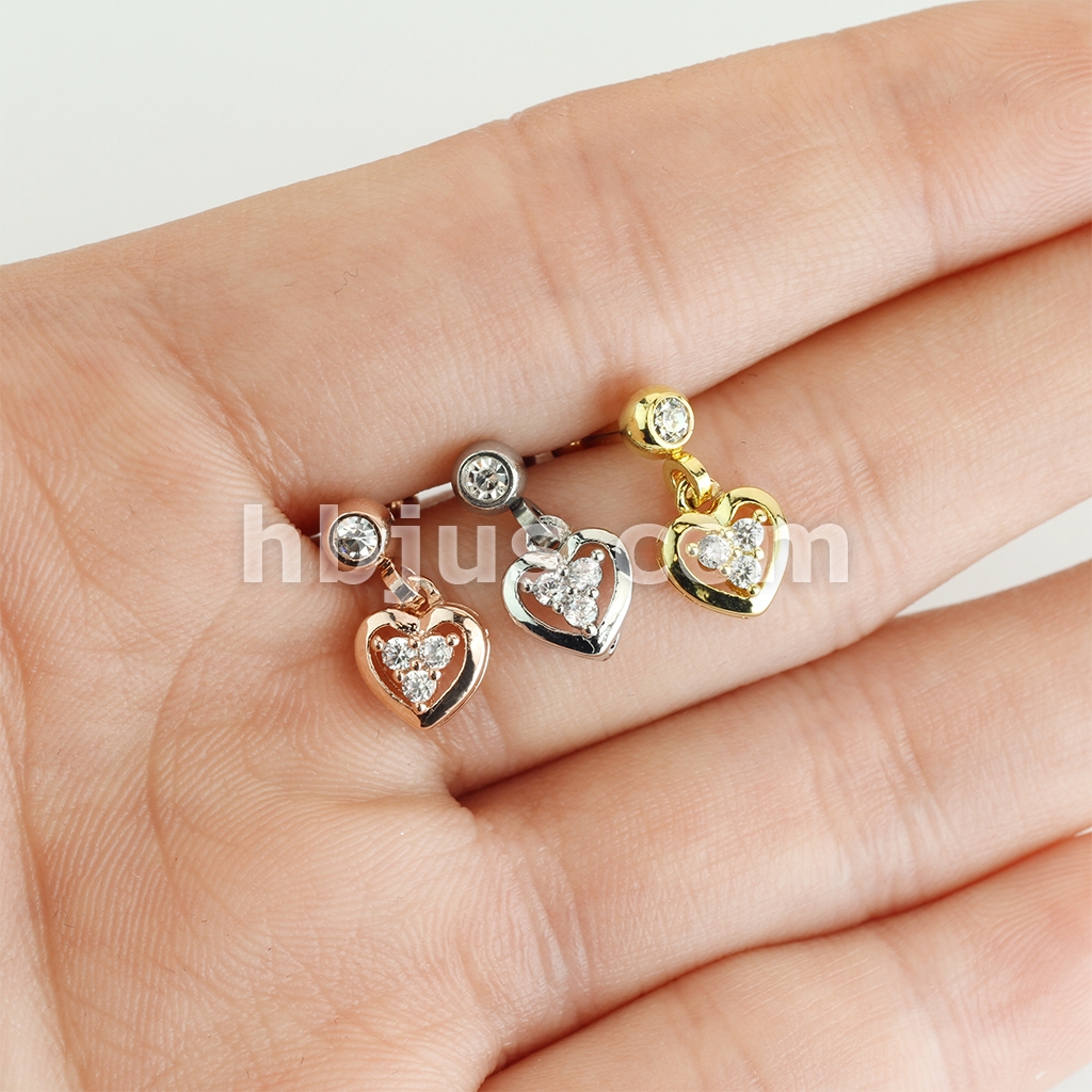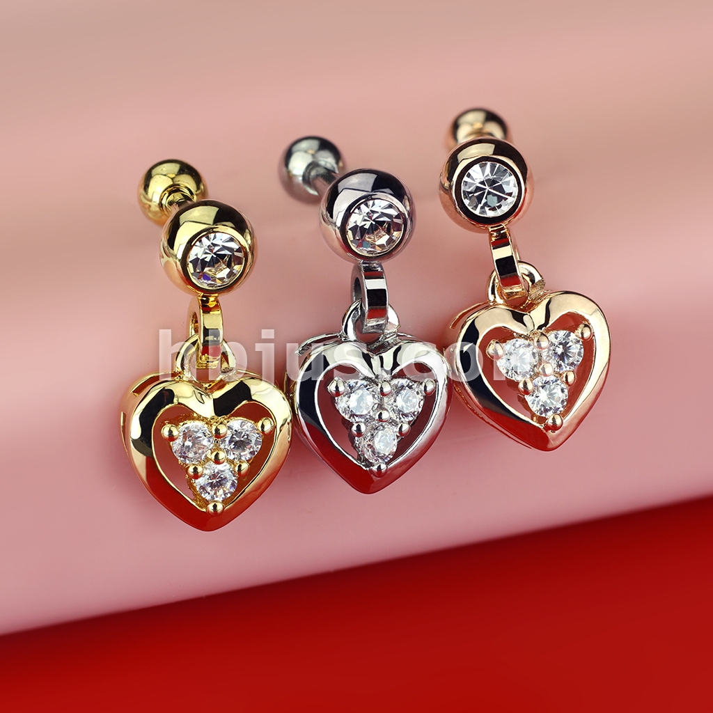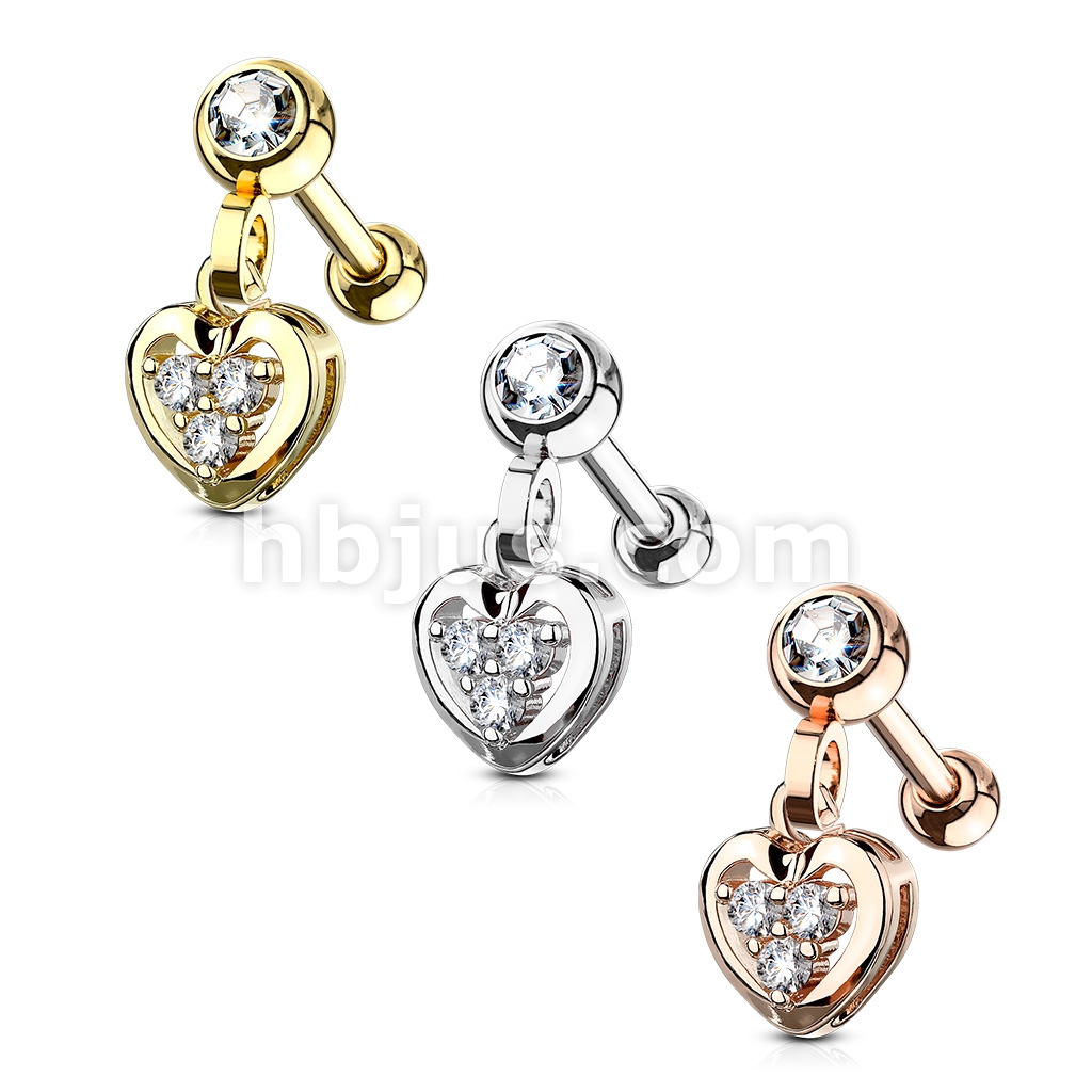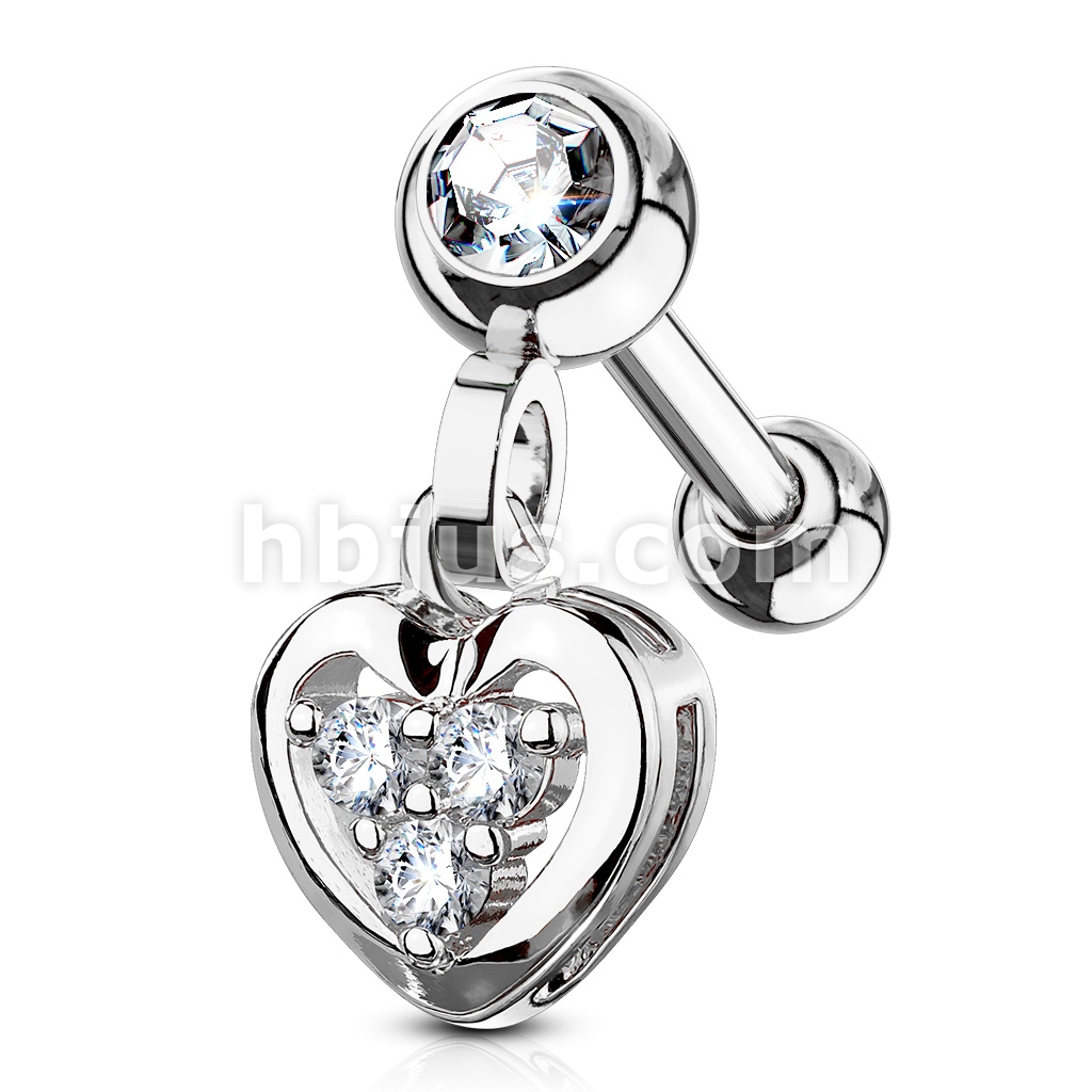 Clear Gem Set Ball with CZ Filled Heart Dangle 316L Surgical Steel Cartilage, Tragus Barbell Studs