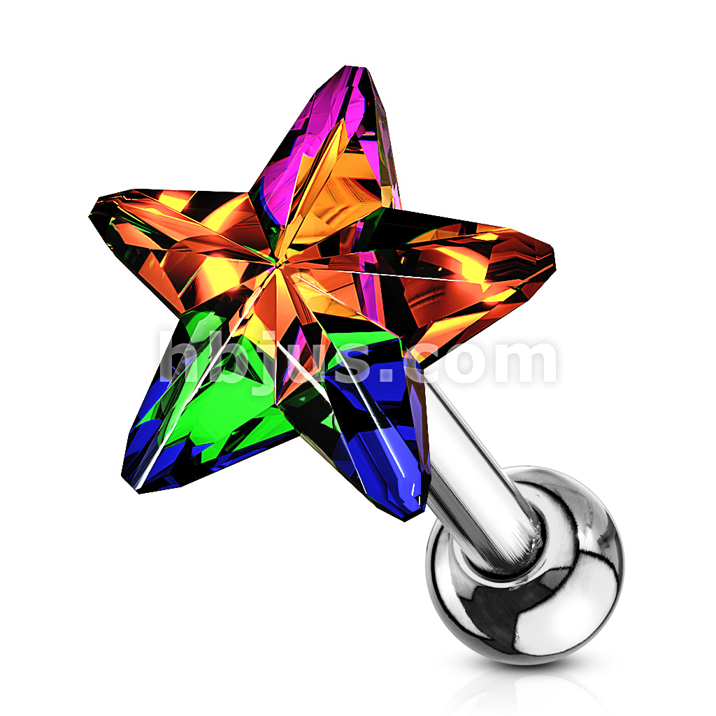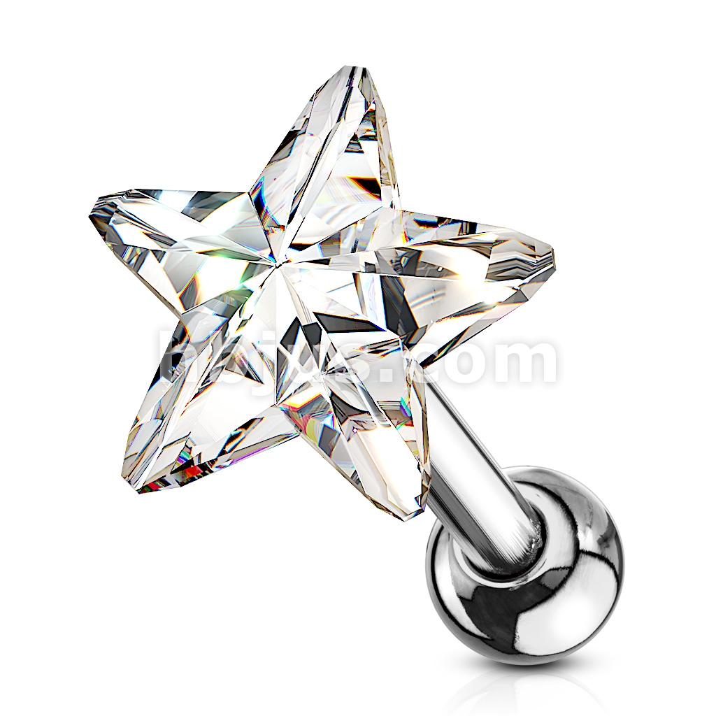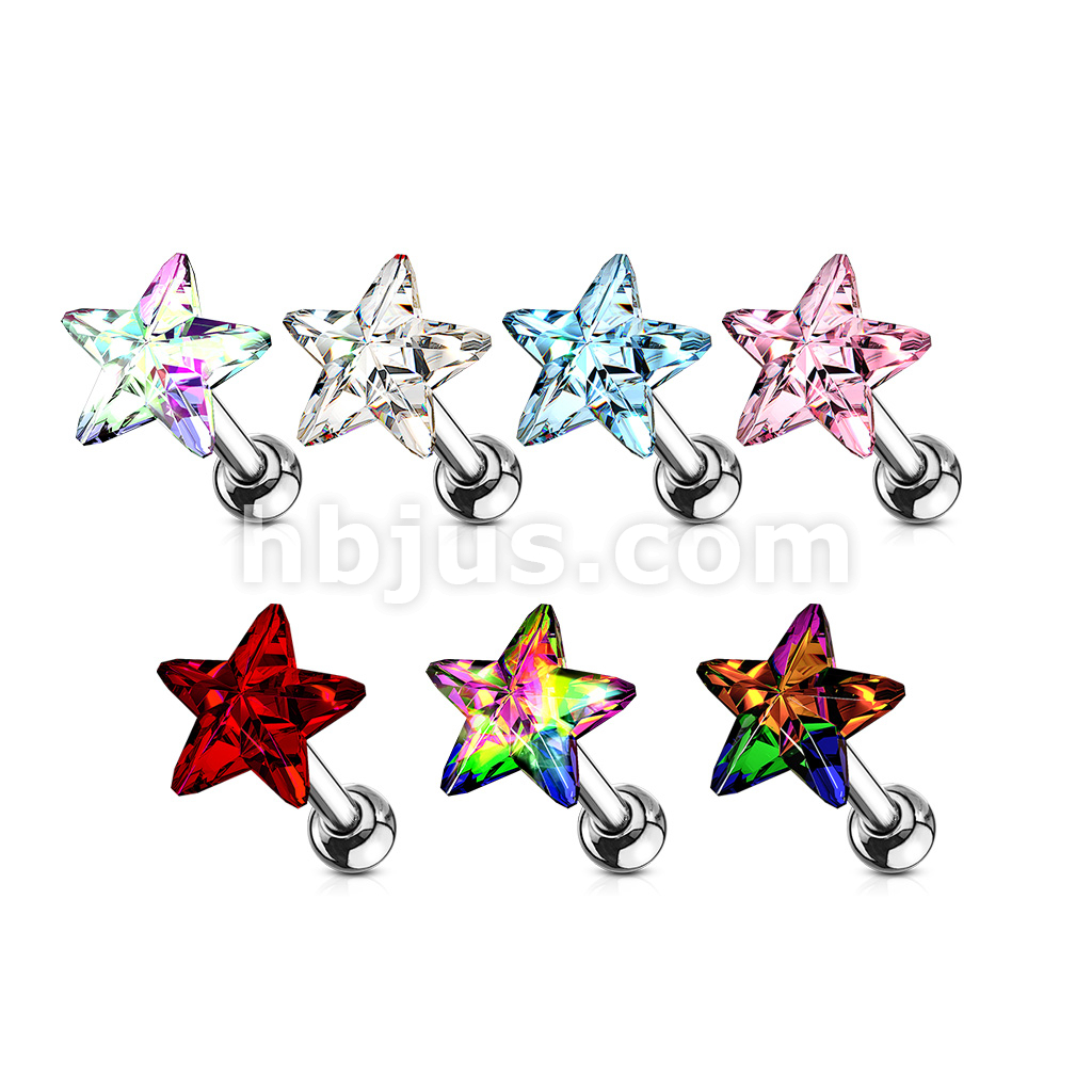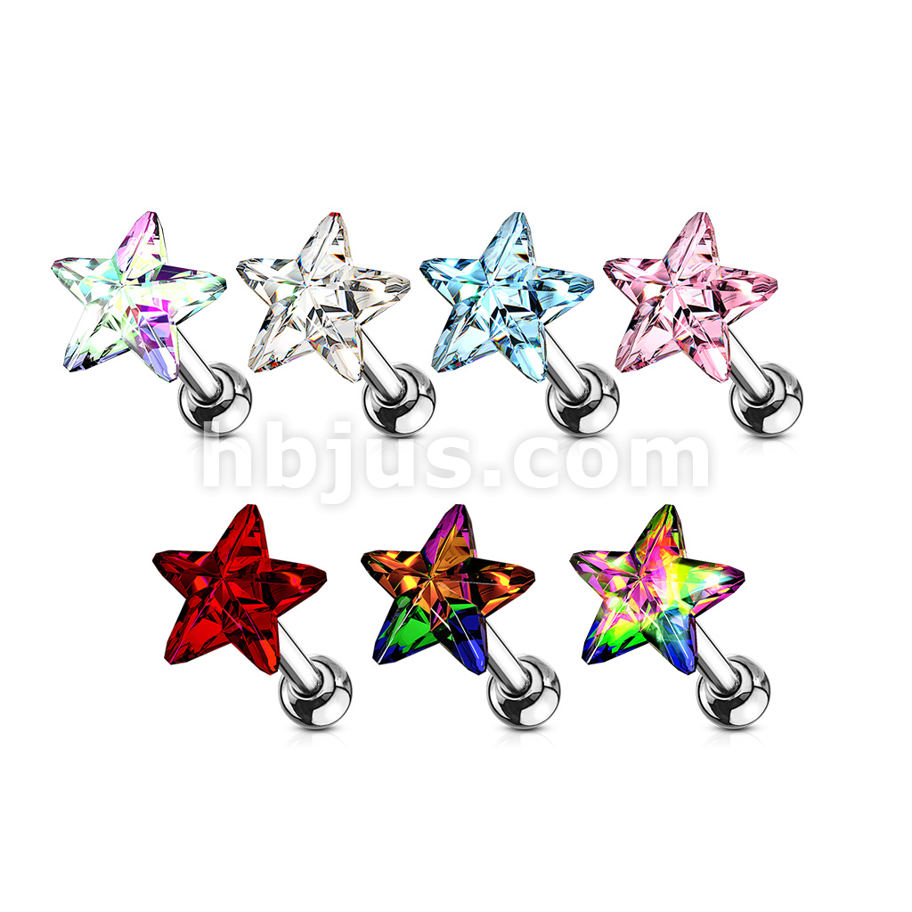 Star Crystal Top 316L Surgical Steel Cartilage, Tragus Barbell Studs