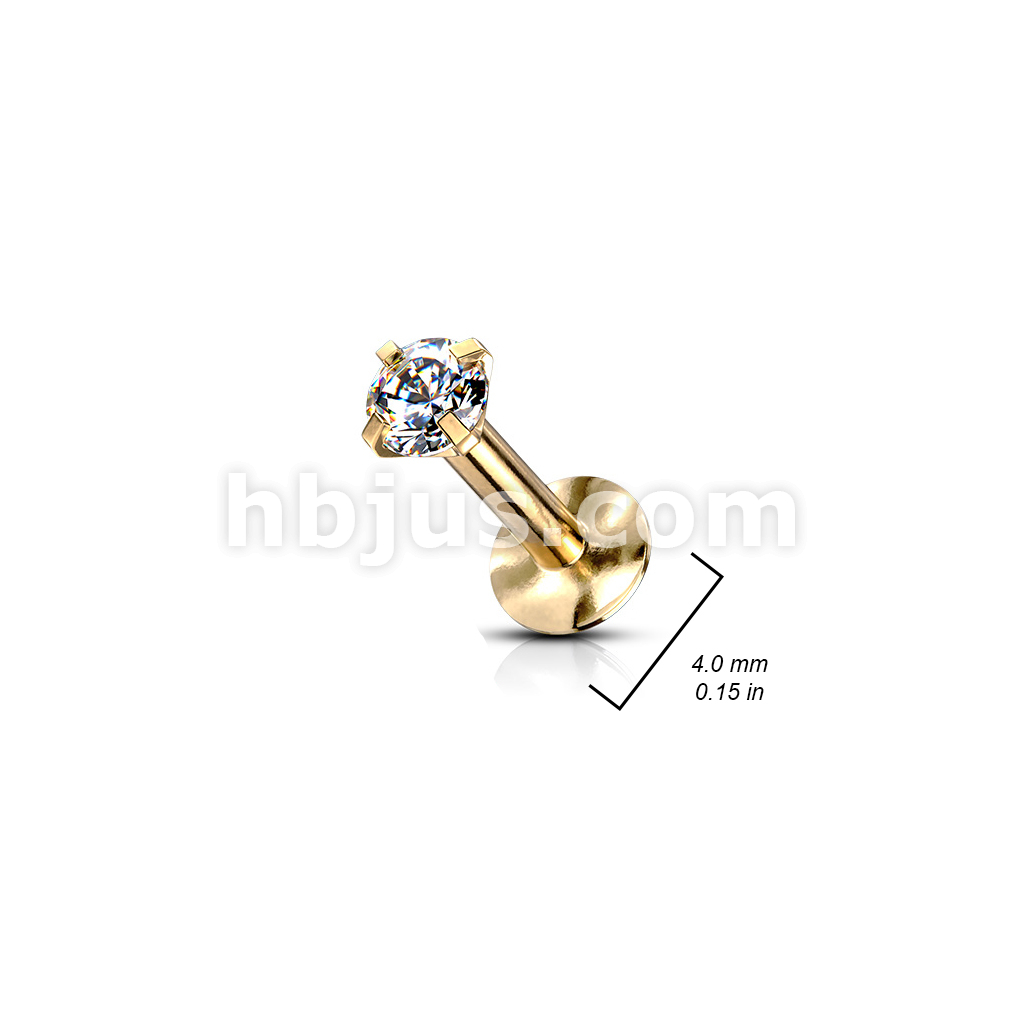 4 Pcs Value Pack Internally Threaded Round Prong Top Gem Labret Monroe Titanium IP Over 316L Surgical Steel