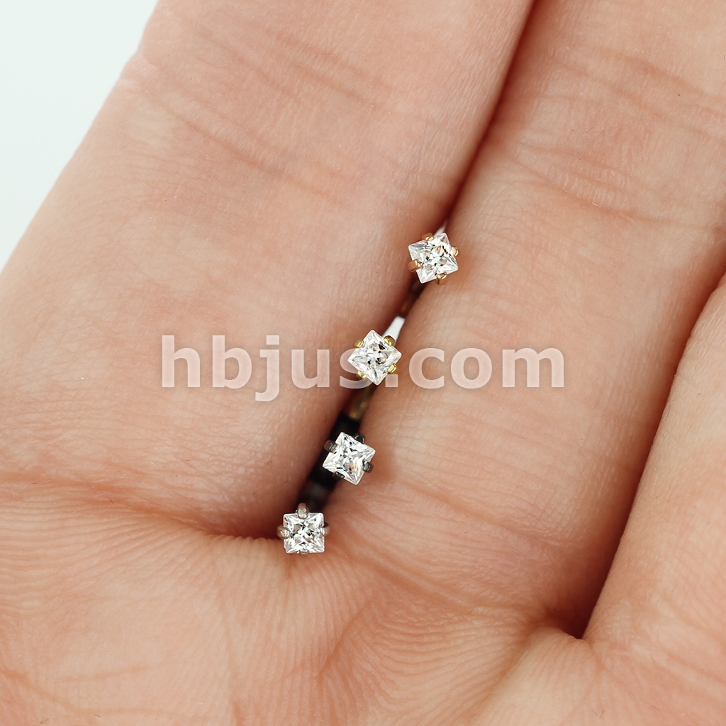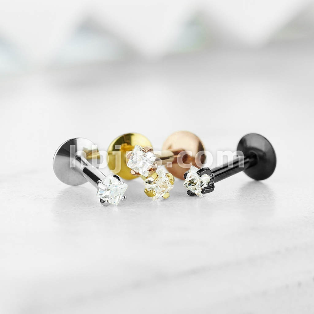 4 Pcs Value Pack Internally Threaded Square Prong Top Gem Labret Monroe Titanium IP Over 316L Surgical Steel