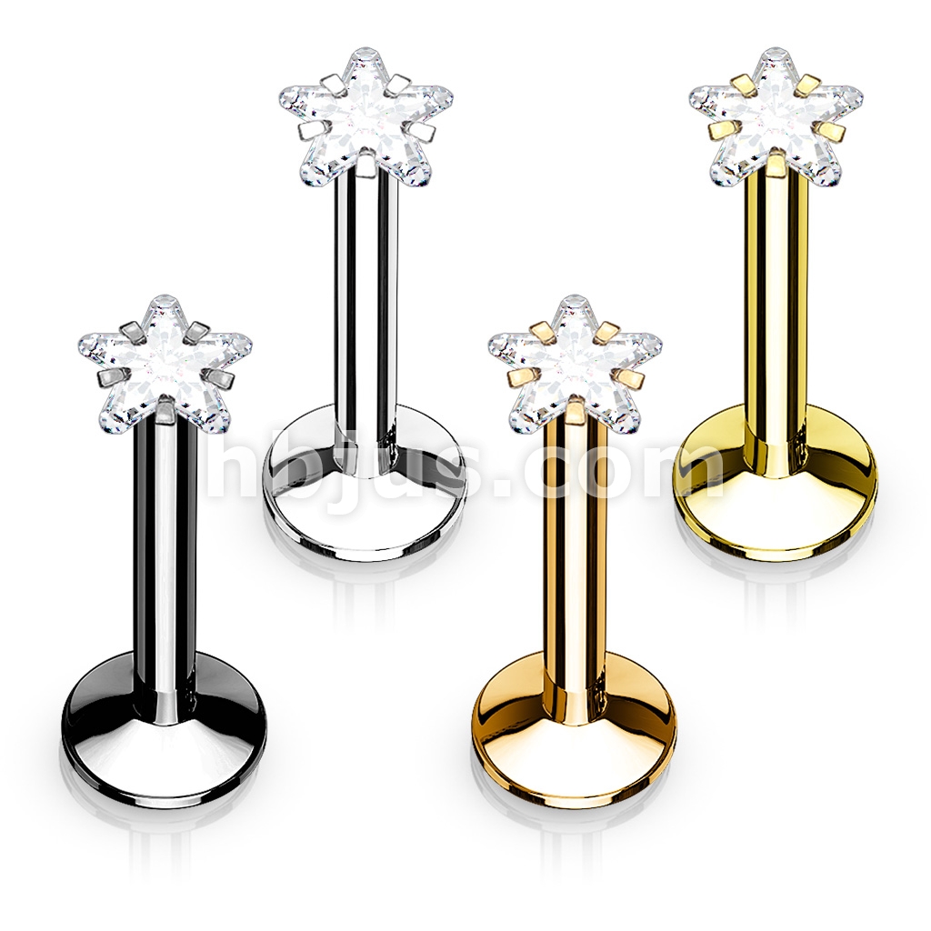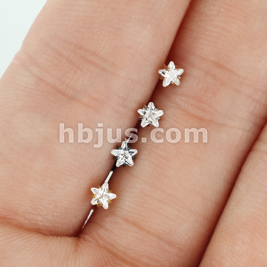 4 Pcs Value Pack Internally Threaded Star Prong Top Gem Labret Monroe Titanium IP Over 316L Surgical Steel