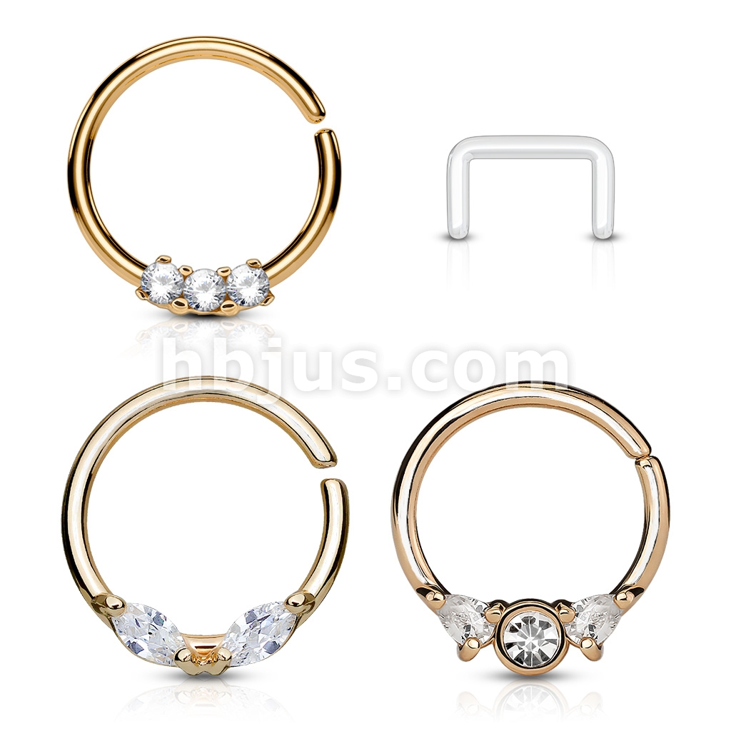 3 Pcs Value Pack Assorted Half Circle Bendable 316L Surgical Steel Nose Septum and Ear Cartilage Hoops with Free Clear Retainer