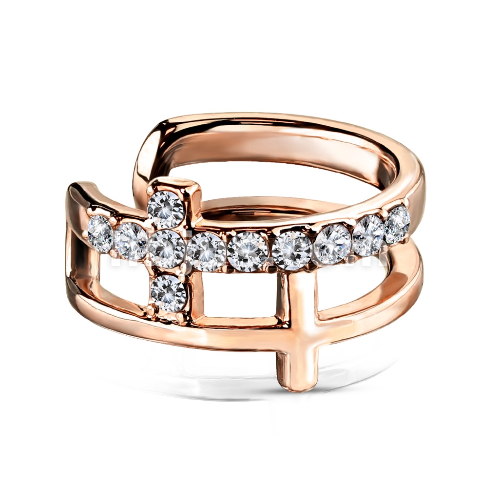 Double cross design with one of the cross accented with 1.5mm CZ gems