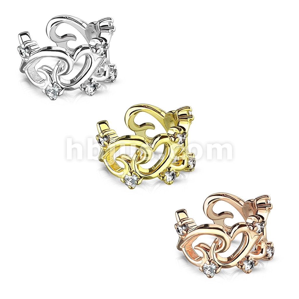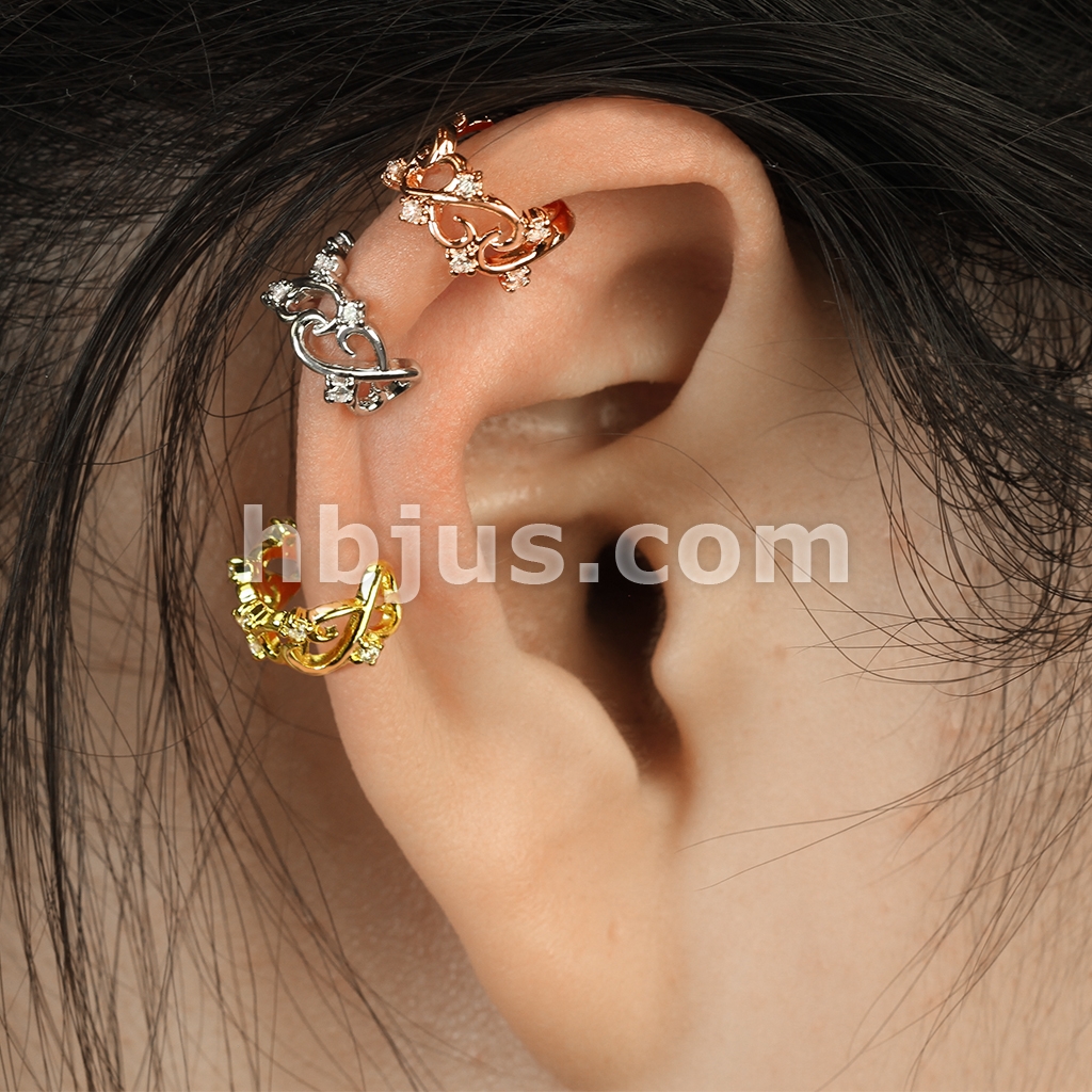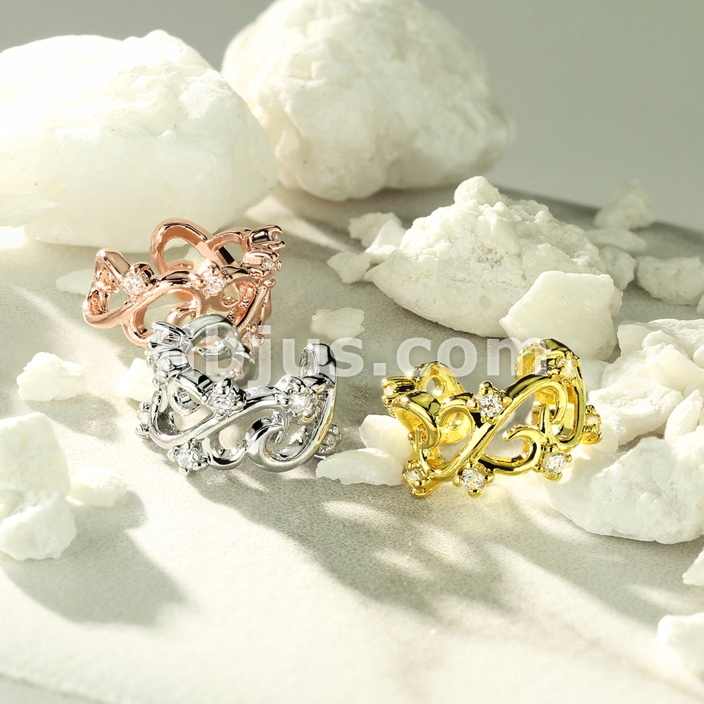 Filigree Linked Hearts with CZ Accents Non-Piercing Ear Cuff