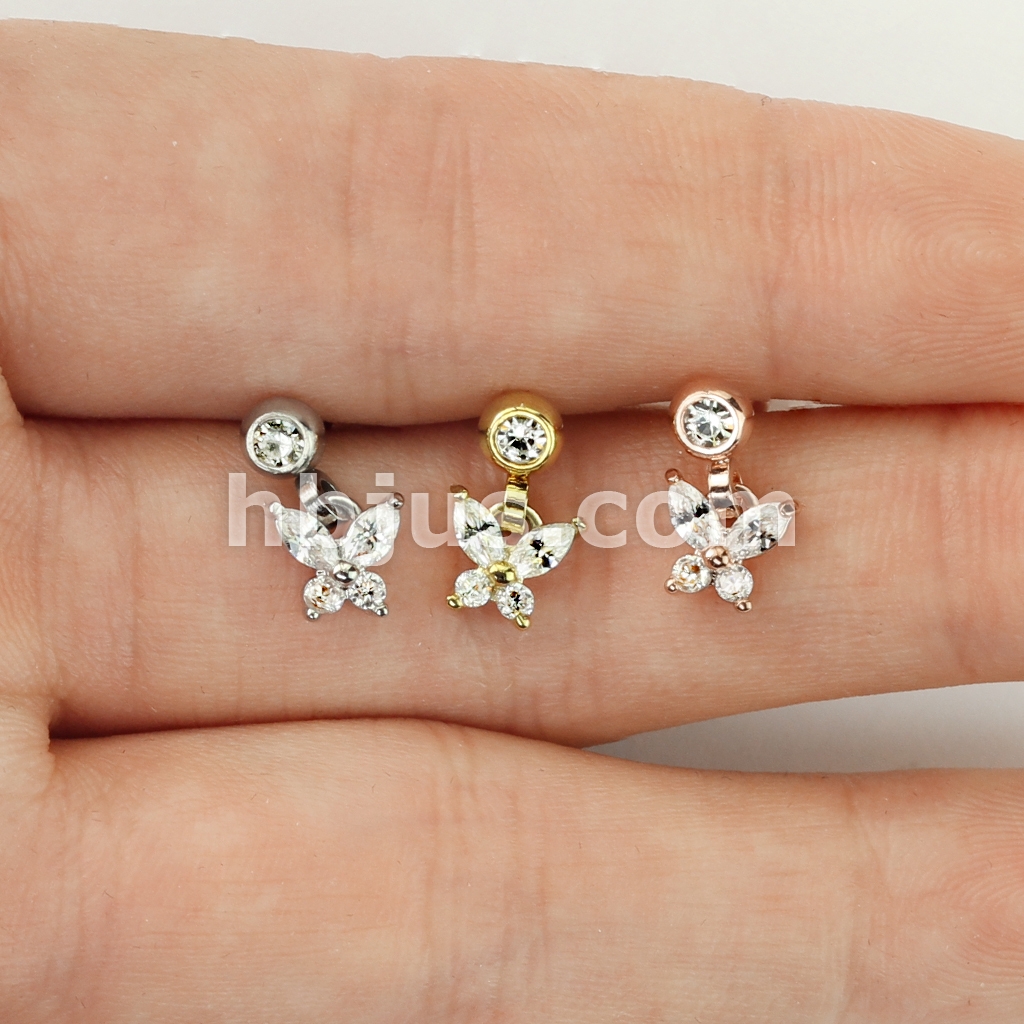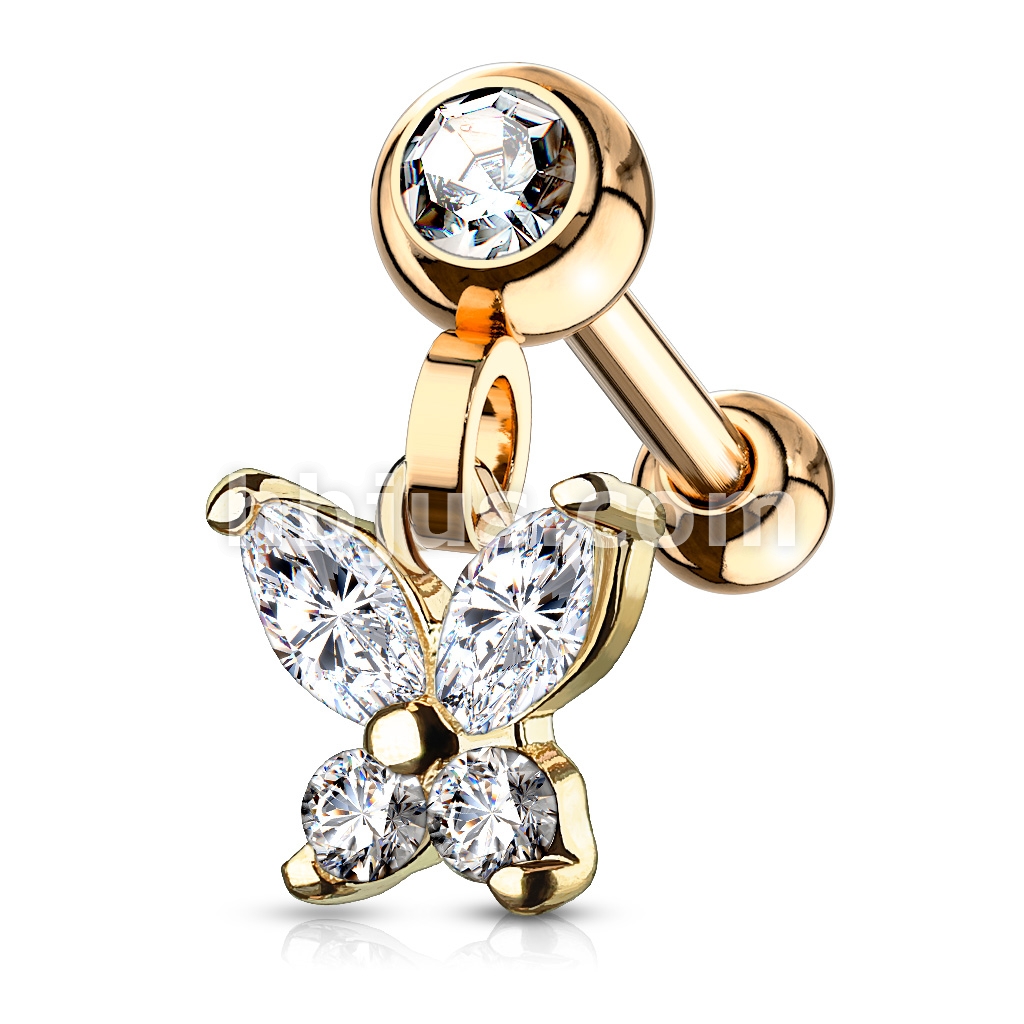 CZ Butterfly Dangle Jeweled Set Ball 316L Surgical Steel Ear Cartilage/Tragus Barbell Studs