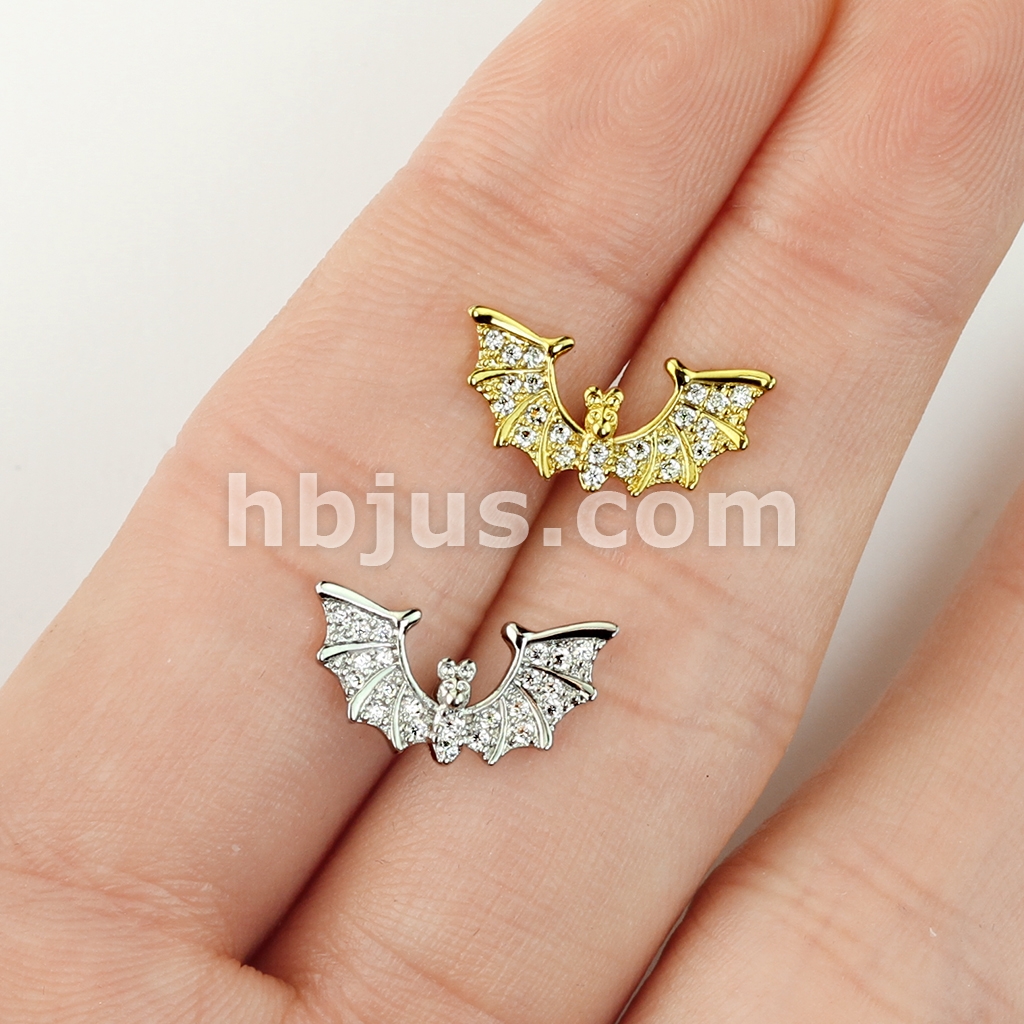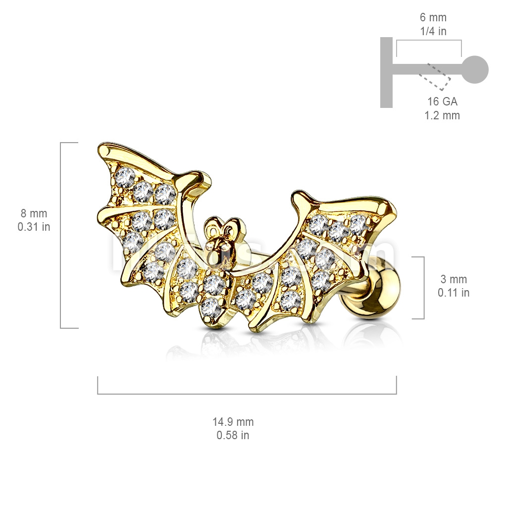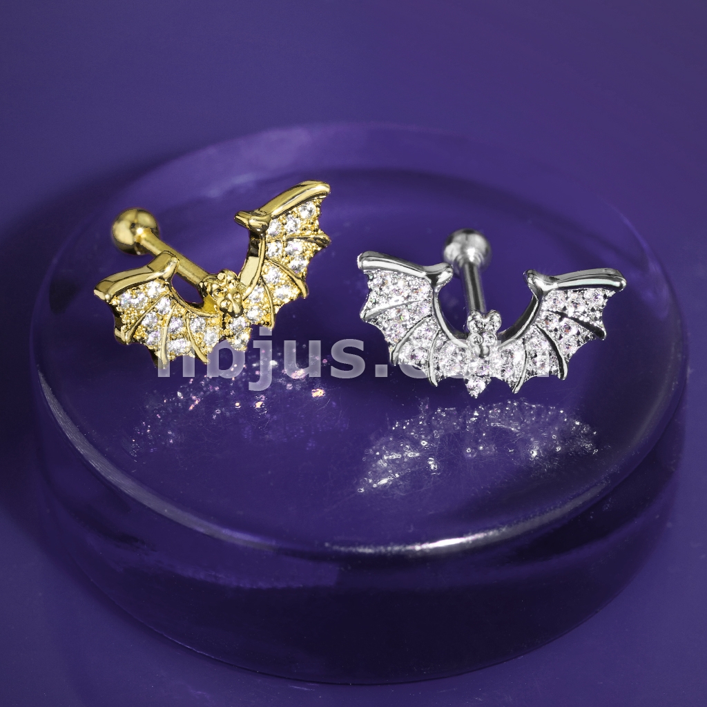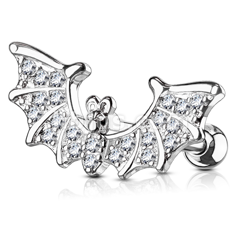 CZ Paved Bat Wings Top 316L Surgical Steel Ear Cartilage/Tragus Barbell Stud Rings