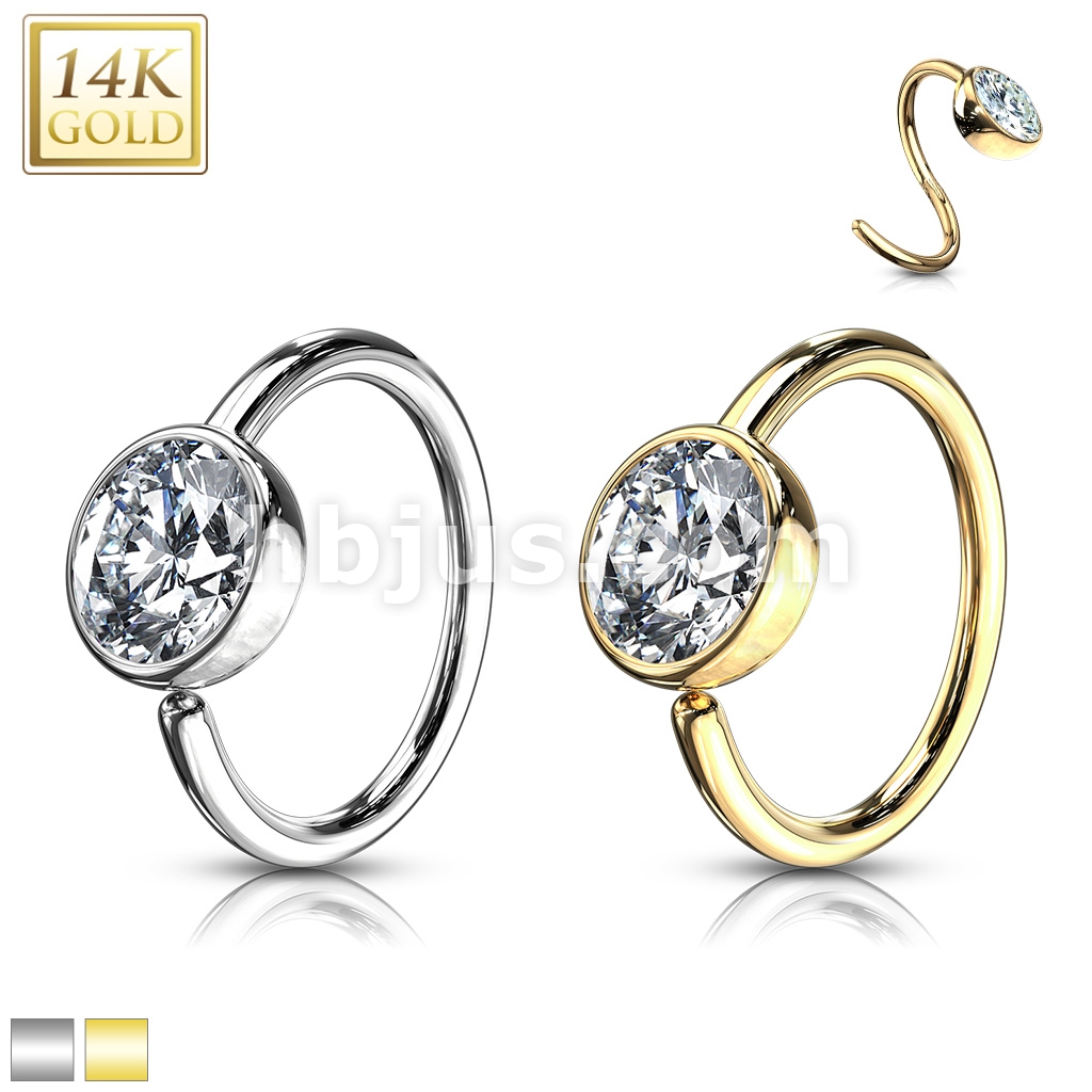 Ball CZ Hoop Ring 14 Karat Solid Gold