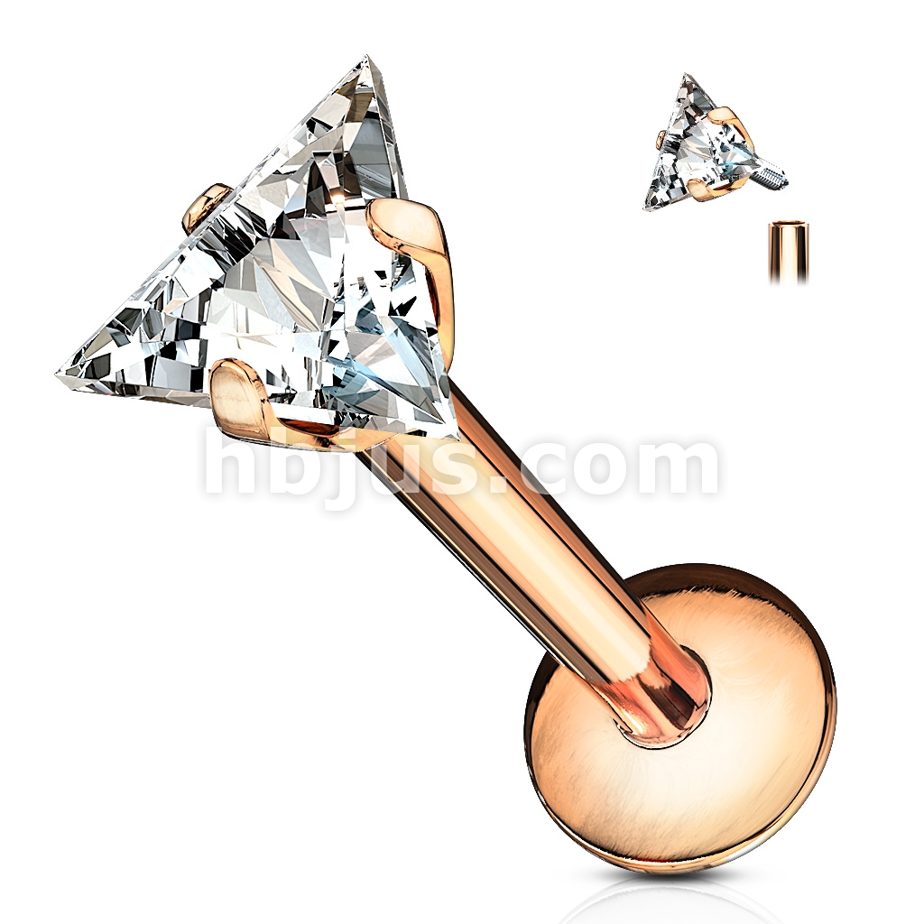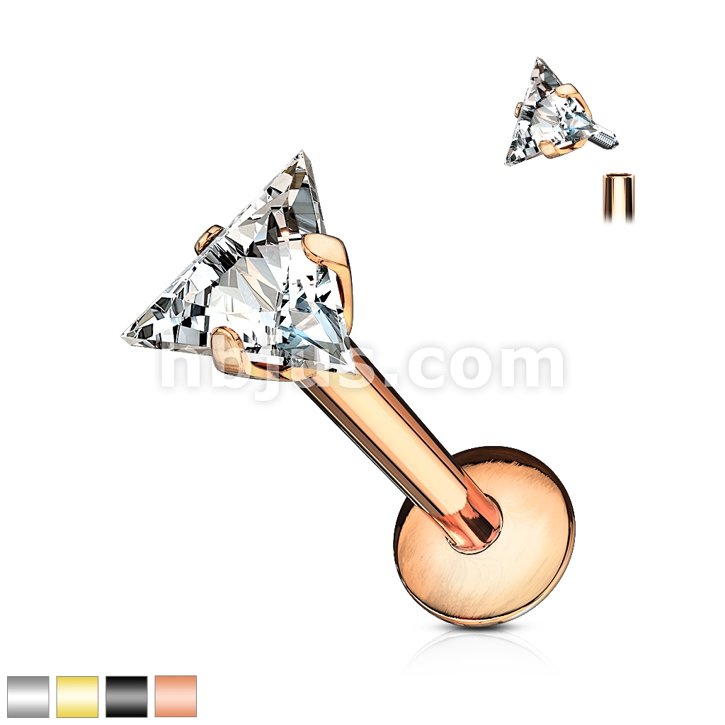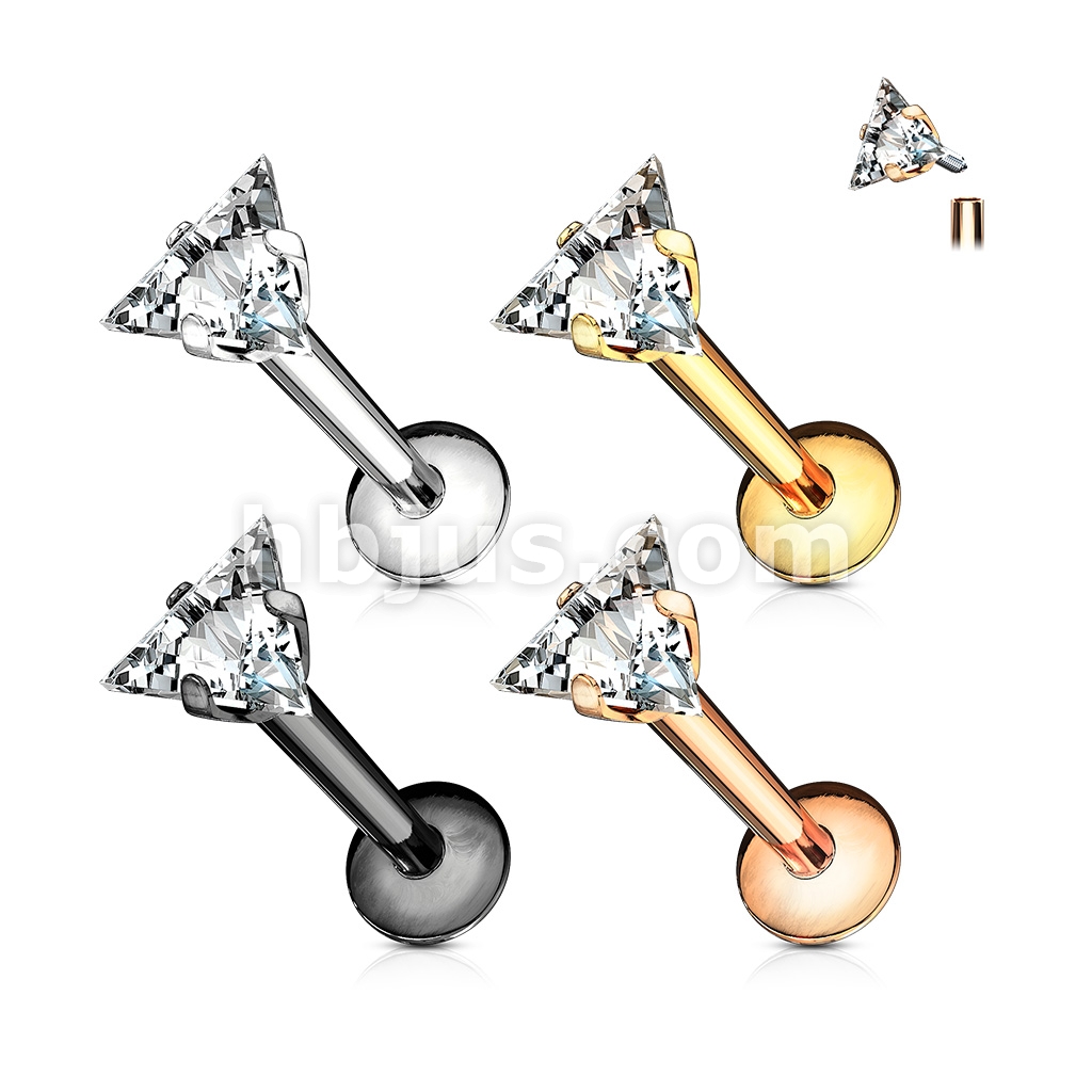 Triangle CZ Prong Set 316L Internally Threaded Labret, Monroe, Cartilage Stud Rings