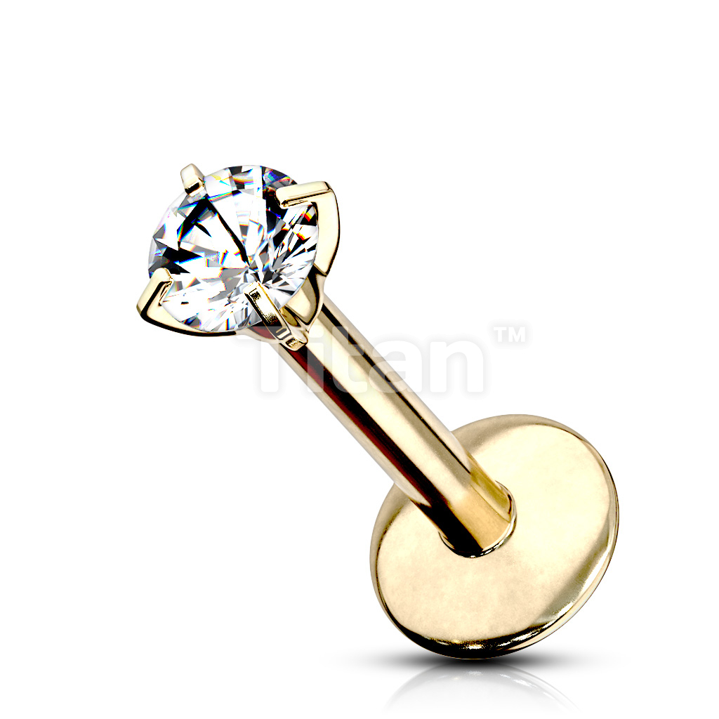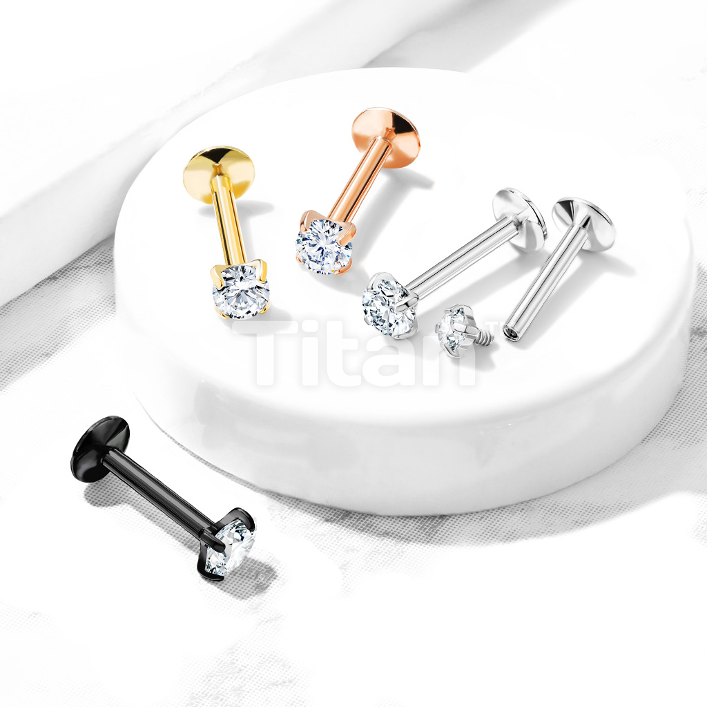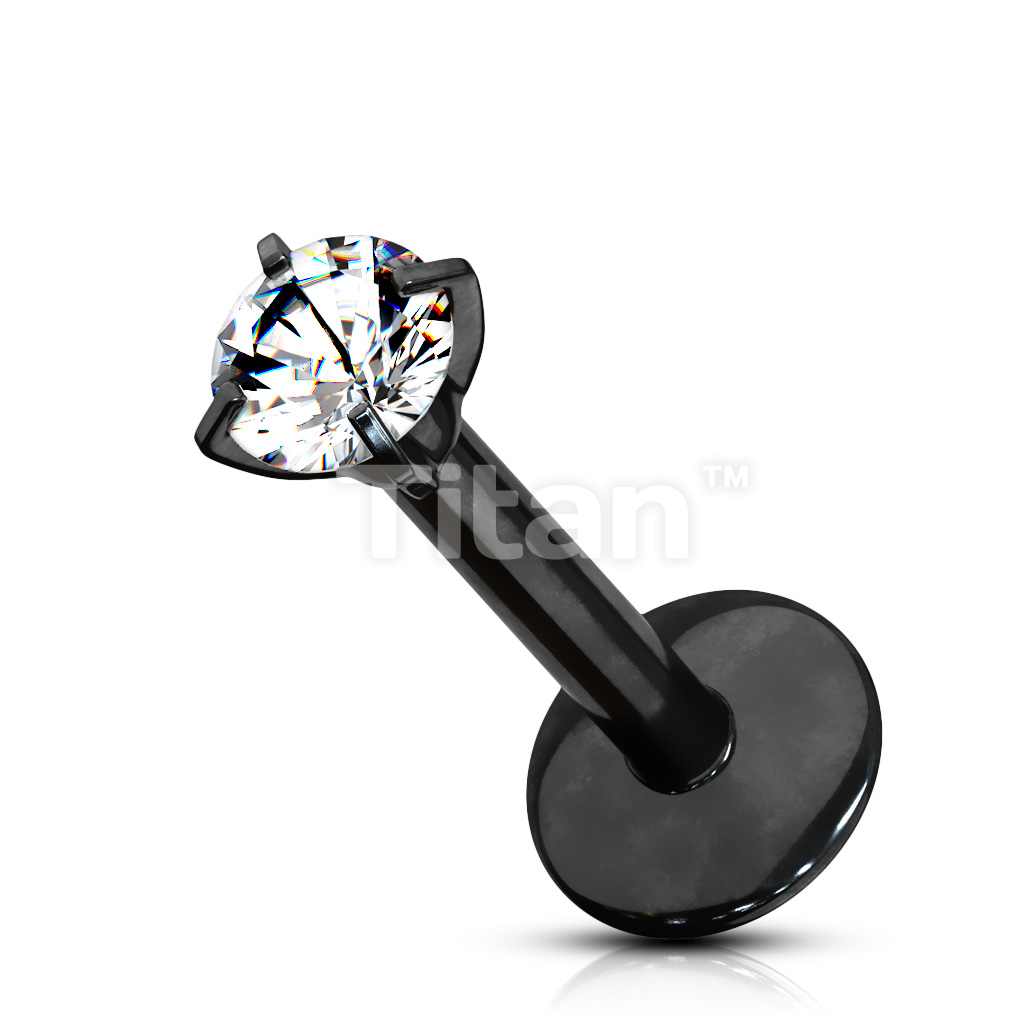 Implant Grade Titanium Internally Threaded Prong Set Round CZ Labret