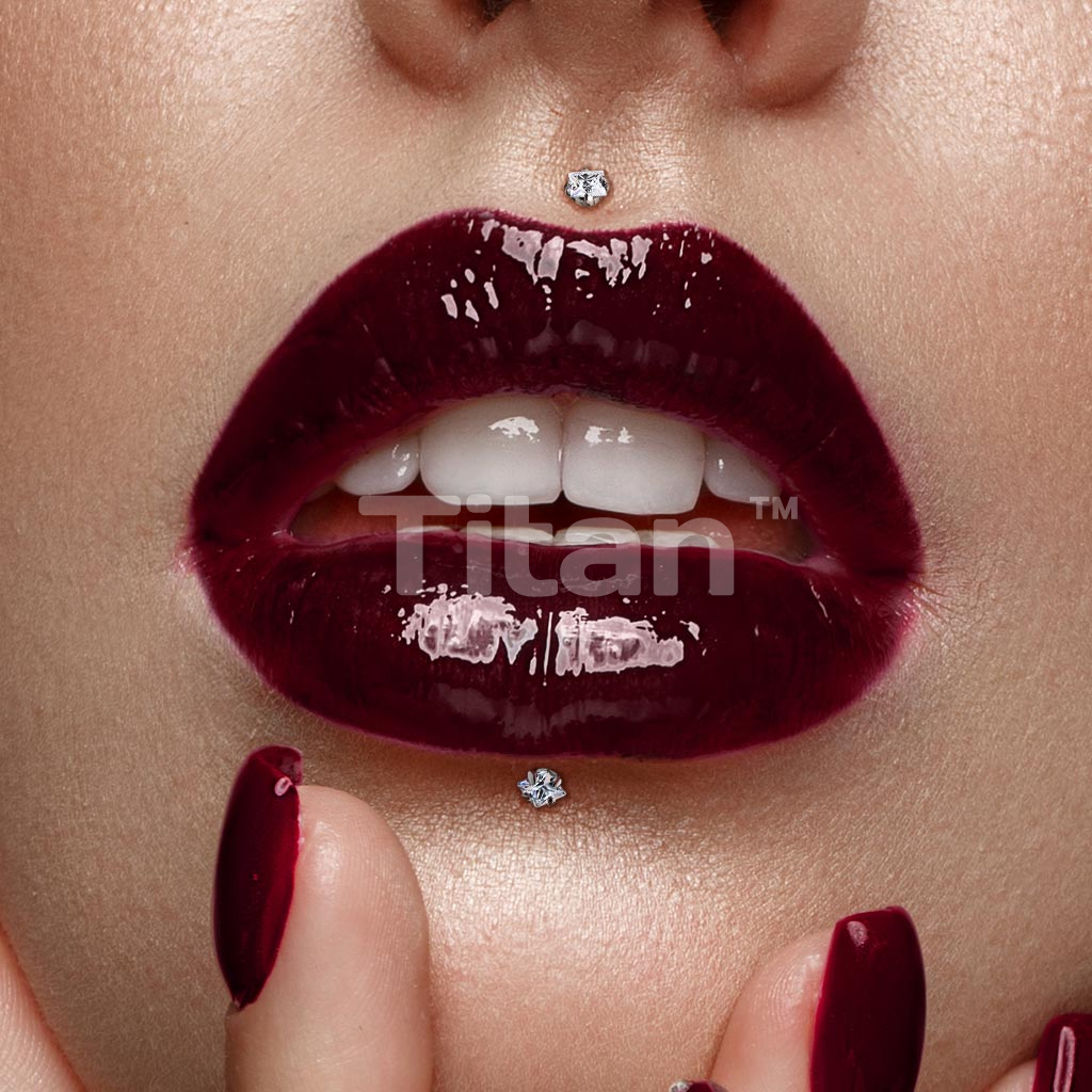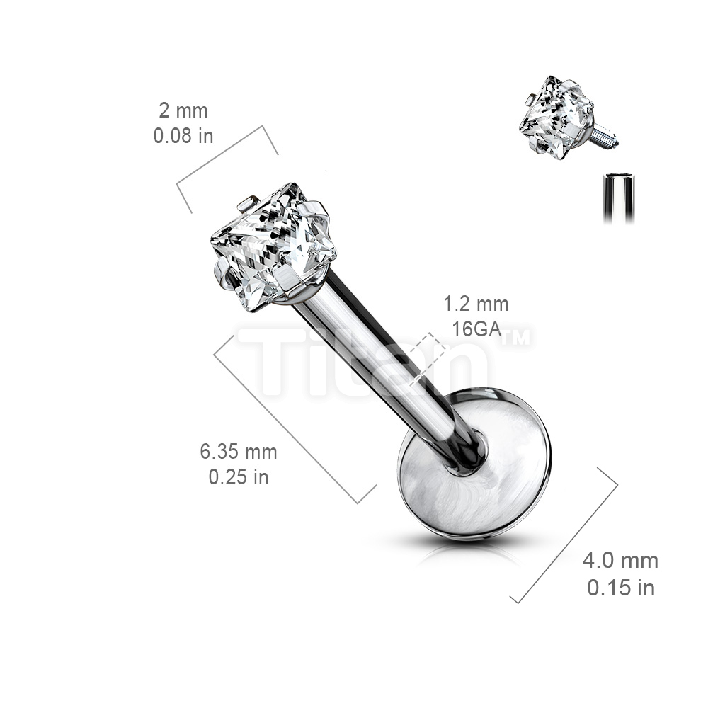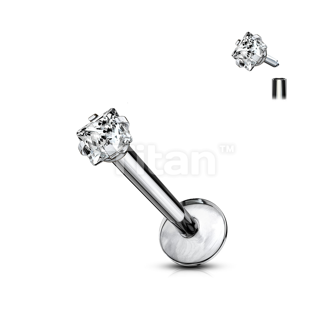 Implant Grade Titanium Internally Threaded Prong Set Square CZ Labret