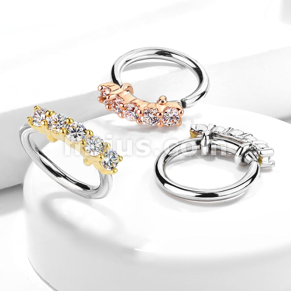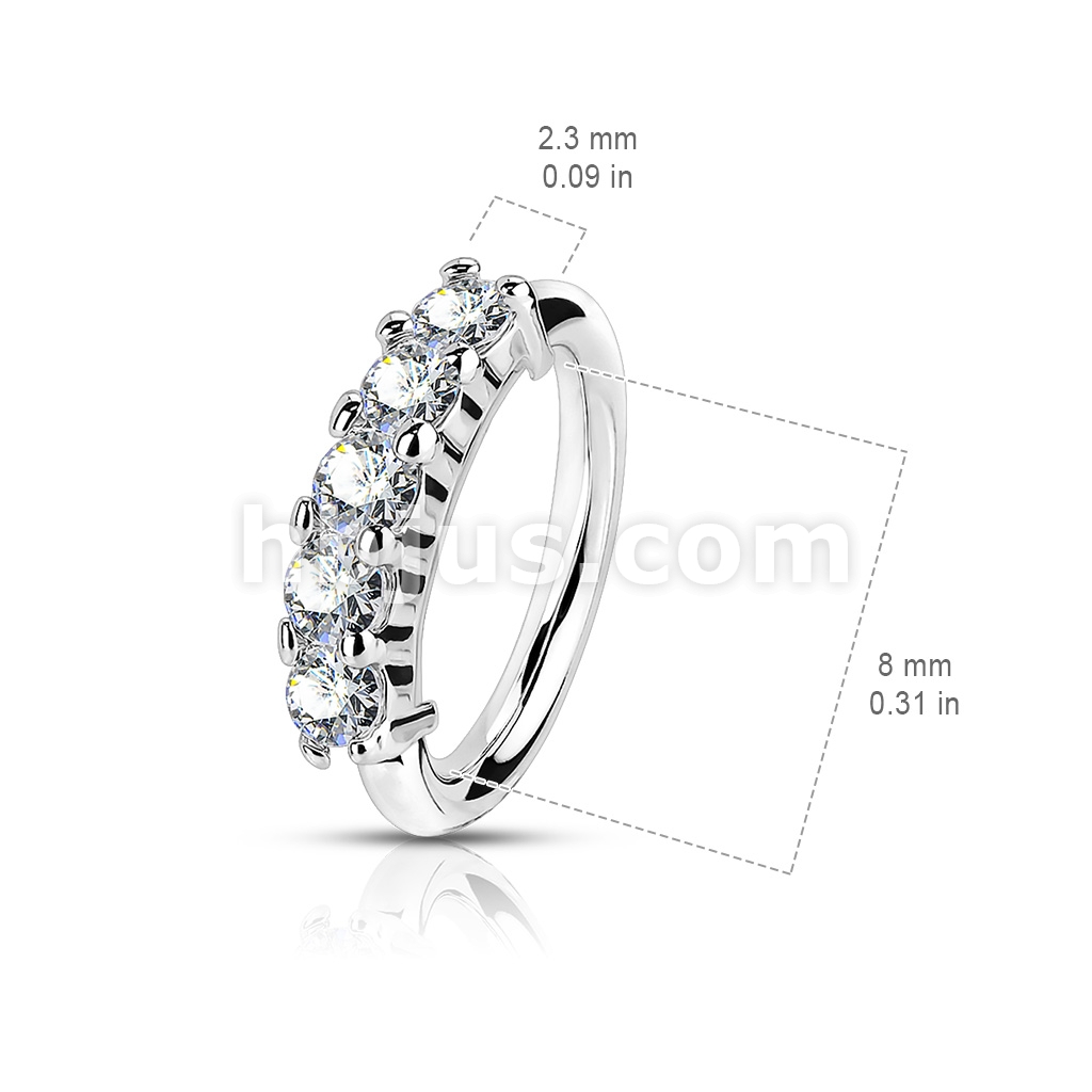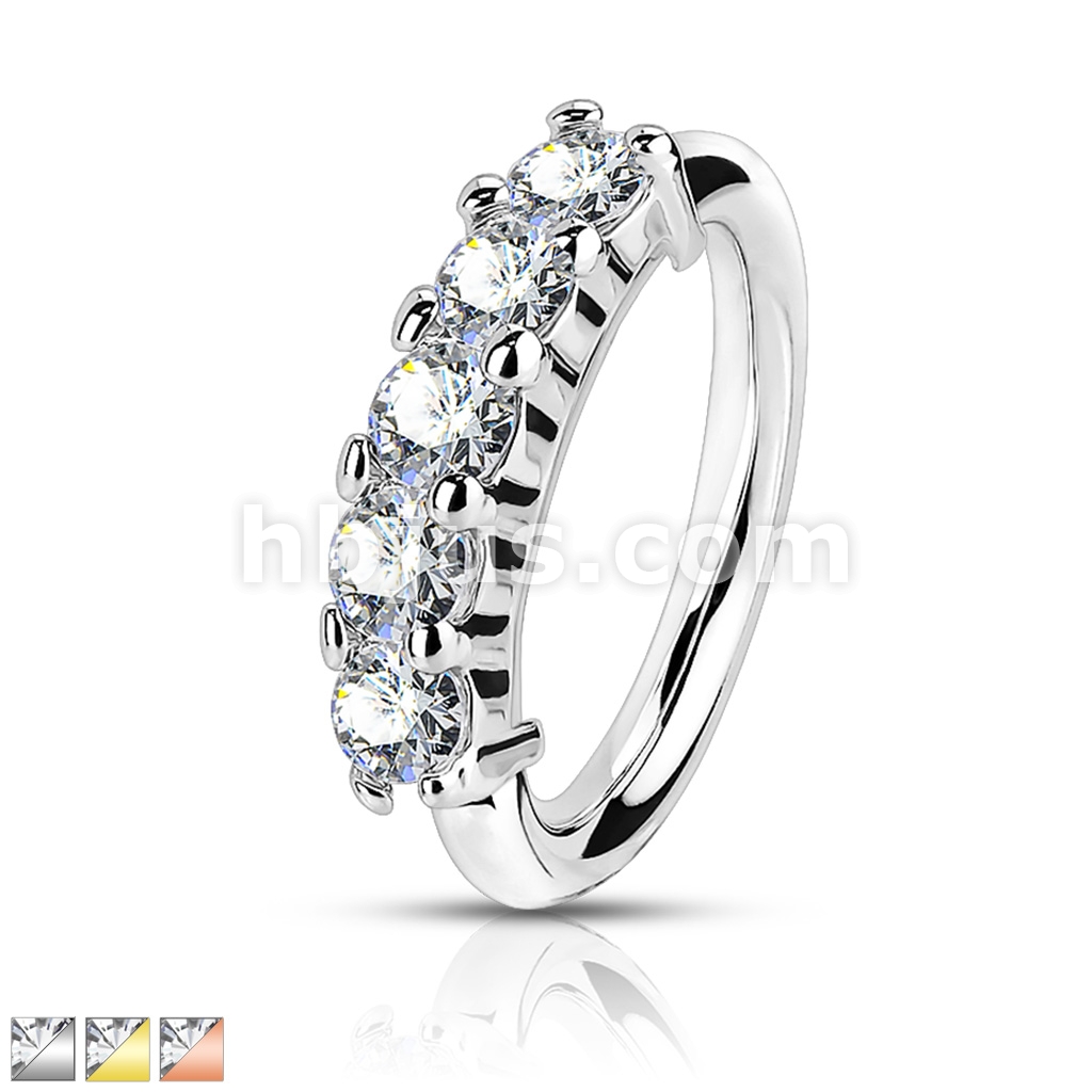 316L Surgical Steel Bendable Hoop Ring With 5 Lined CZ