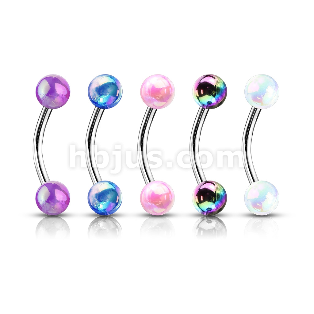 Metallic AB Coating Balls Over 316L Surgical Steel Curved Barbells for Eyebrow, Daith and more